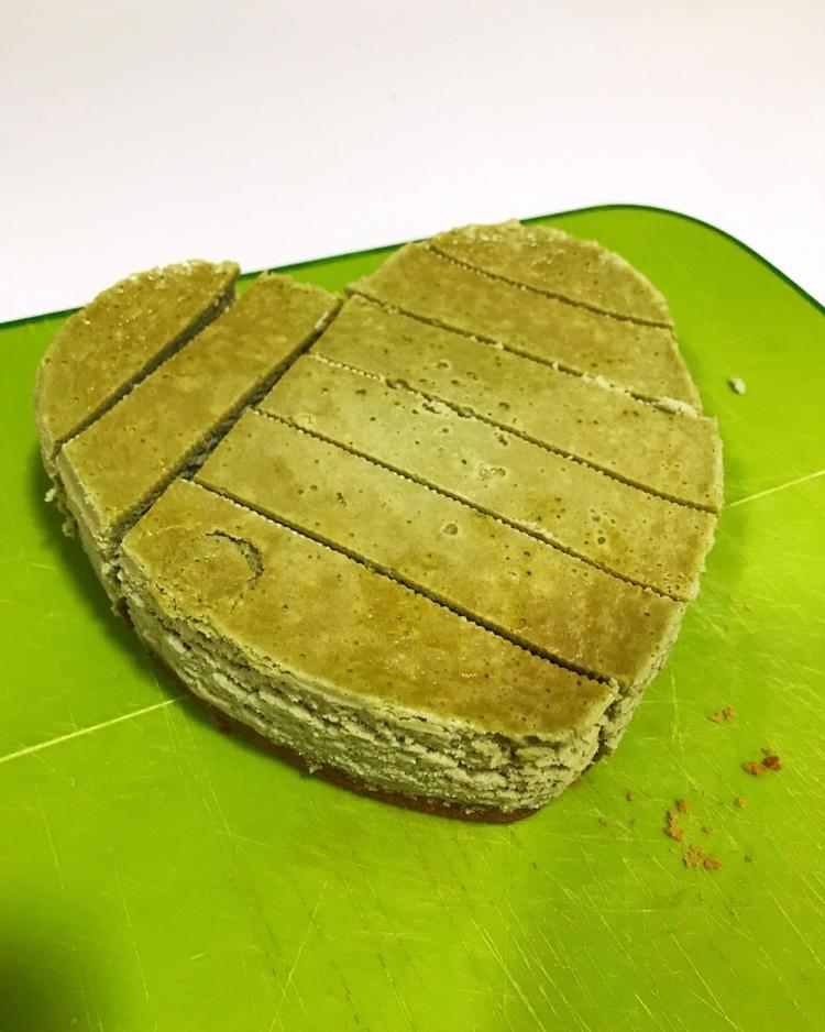 做了6寸圆模,去掉四边,修成方的,饼底做的不够扎实,擀面棍敲的,太粗了,下次用破壁机应该没问题,方子非常好!