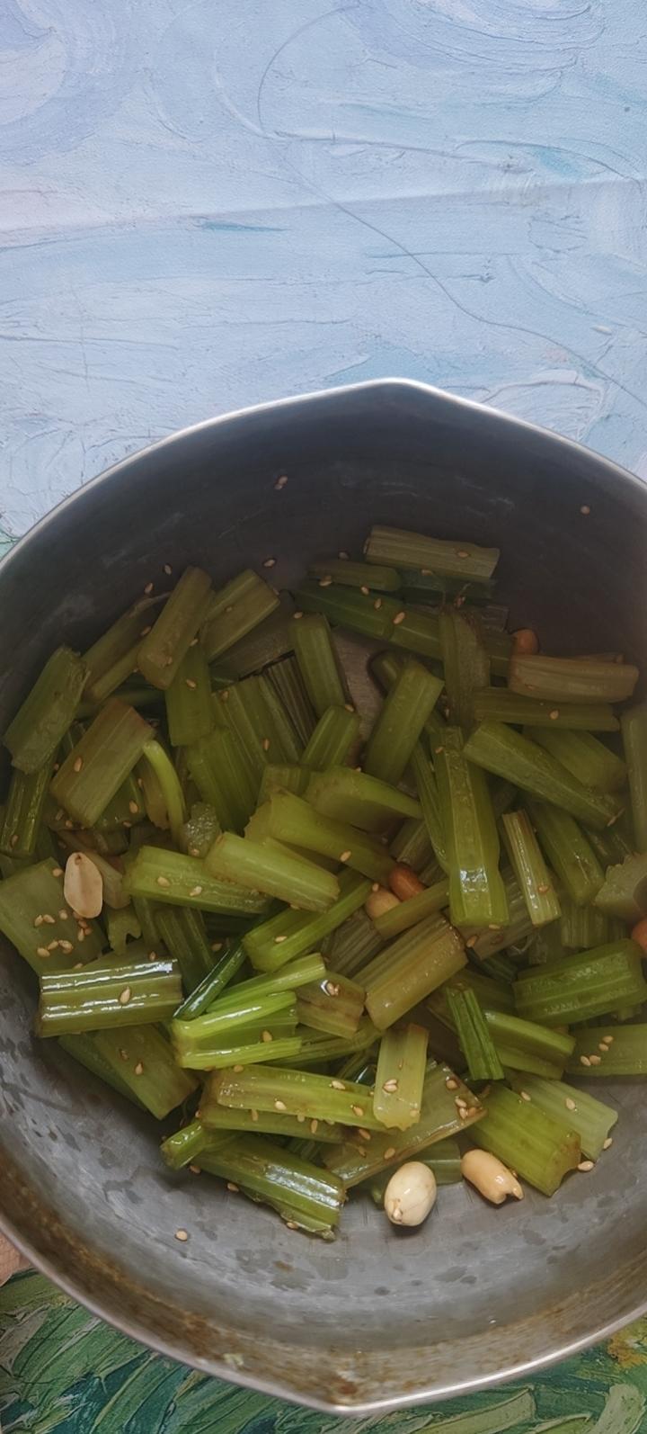 又回到一个人做饭的上班日子了,买了两根芹菜,吵了一盘,芹菜有点老,下次要挑小...