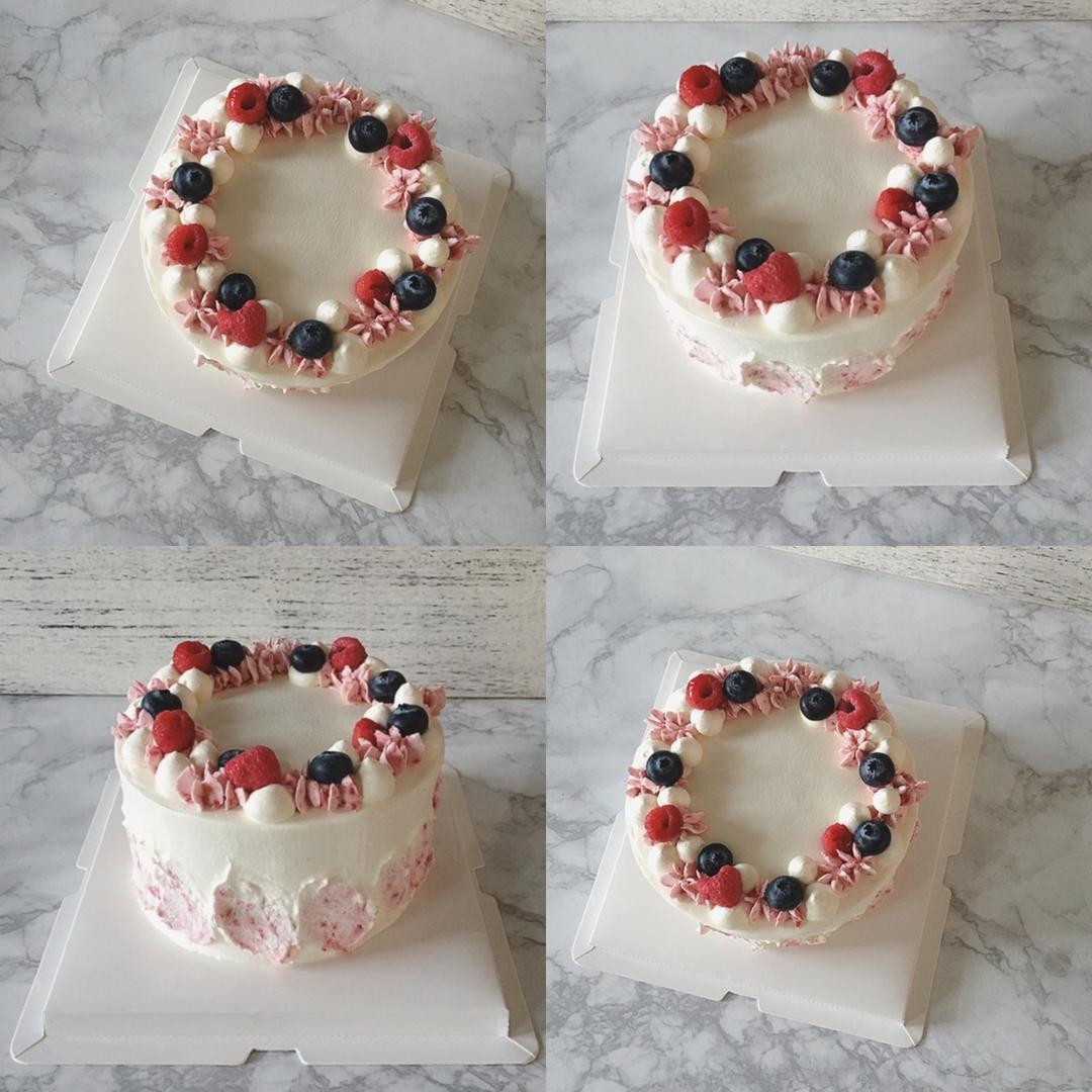 这个双层粉粉是上周做给自己1212的生日蛋糕啦、拿到寝室和所有同学分享。夹馅是巧克力奶油和树莓奶油~表面树莓奶油~ #晚...