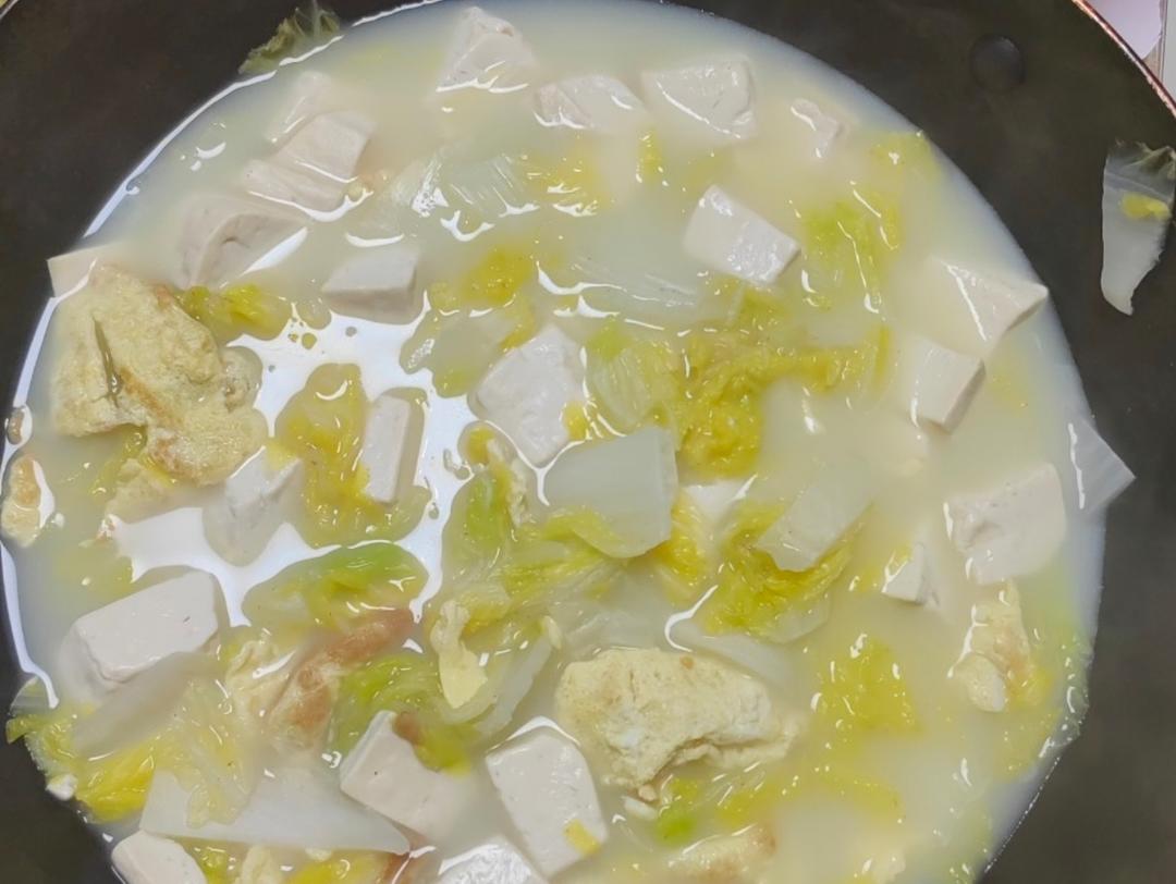 您猜怎么着,忘了煮豆腐,感觉还是生的,味道有点怪😅,白胡椒粉加的好像有点多