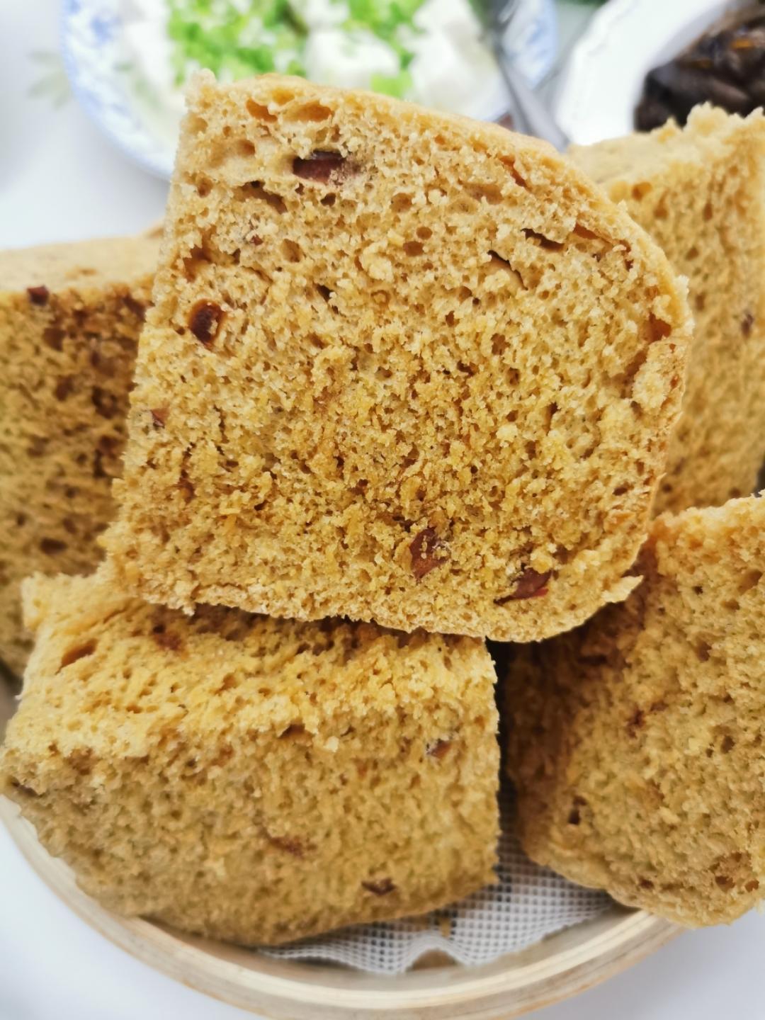 醪糟发面,玉米面和白面比例是1比2。蒸完是之前两倍大,比较成功,唯一问题是中心处略有不熟。