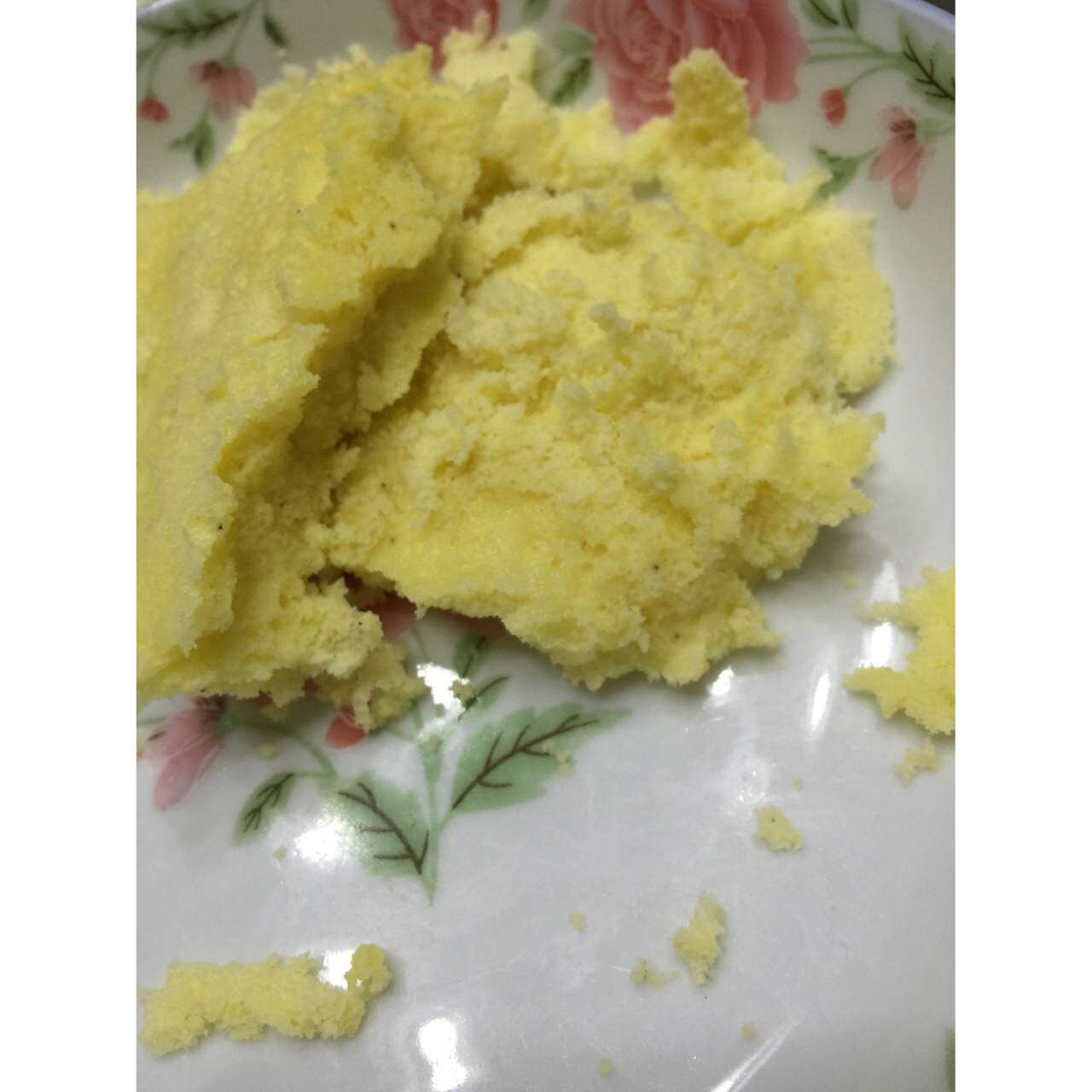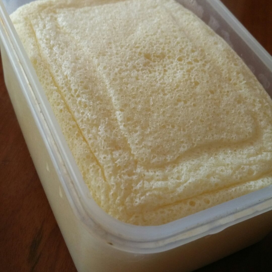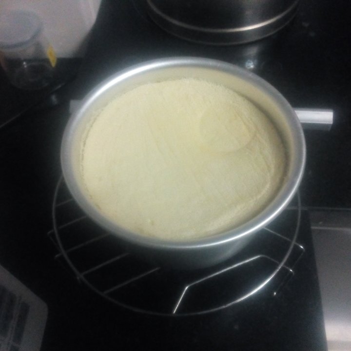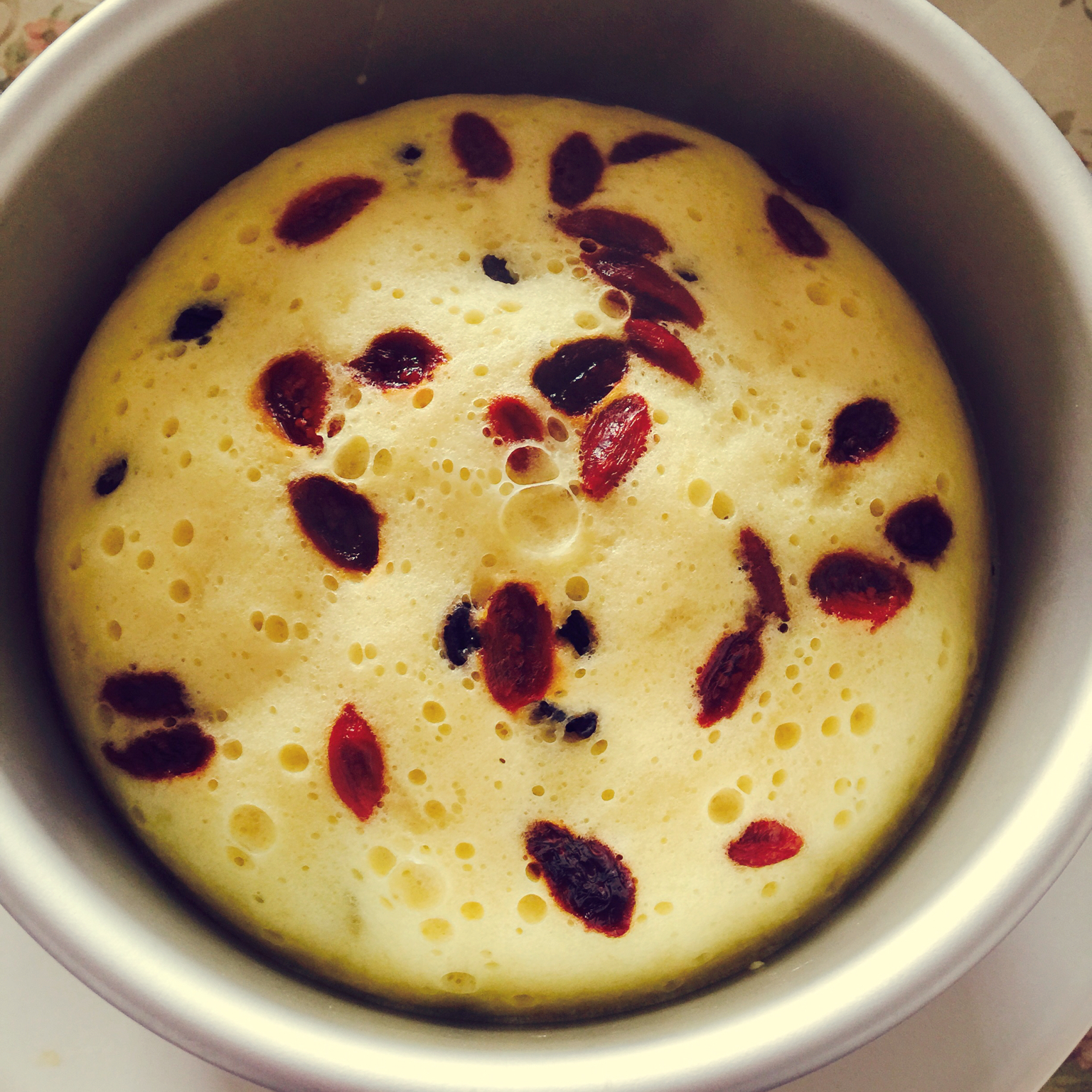 第一次做,发得好高,不回缩。40分钟拿出来后,上面有点稀,又放回锅里蒸了10分钟,看,中间有小泡的地方。自己感觉好完美。...