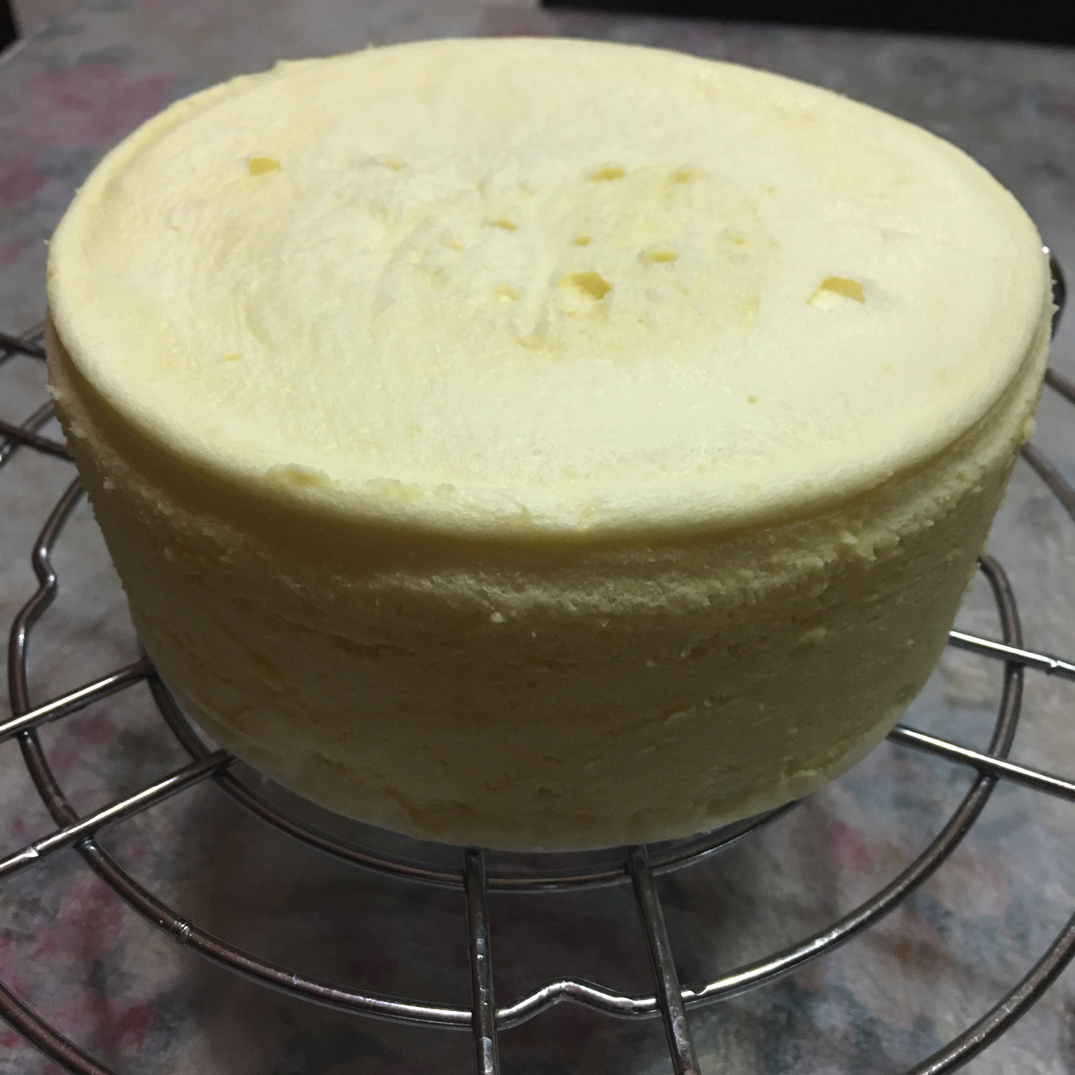 2蛋6寸蒸蛋糕,面上依旧留着电饭煲出气孔印子。准备做香橙慕斯