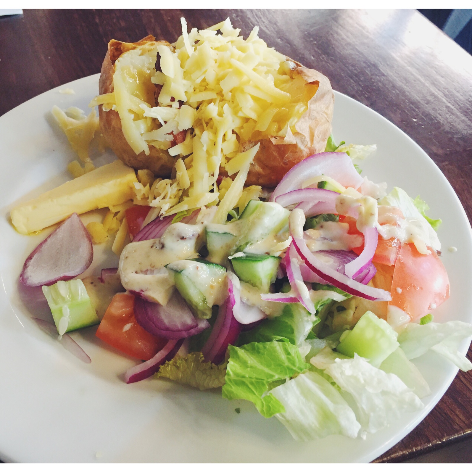 jacket potato 一大个 最后只能狂挤番茄酱把它吃完