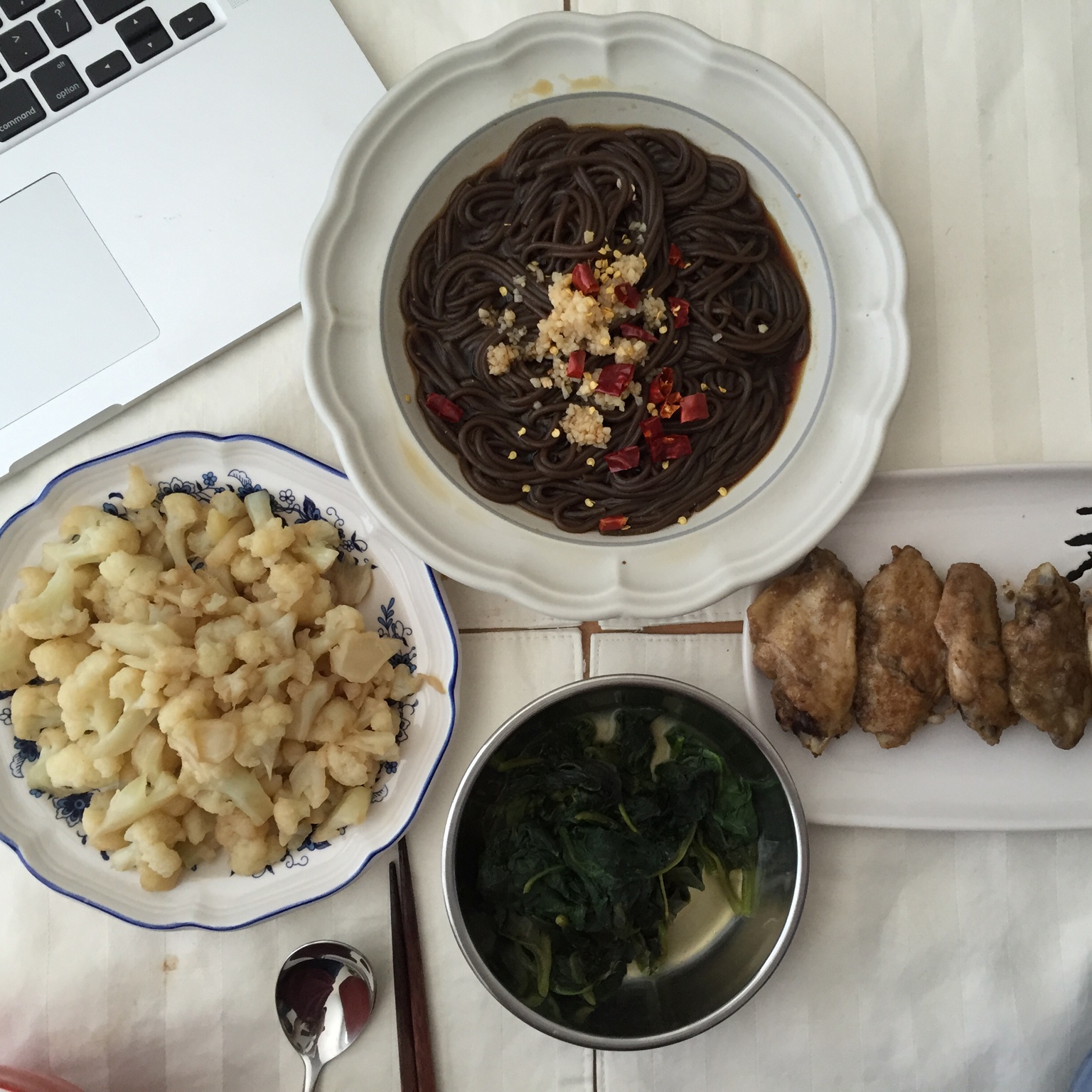 做了盐焗鸡,酸辣蕨根粉(竟然在美国买到蕨根粉,好感动),清炒花菜