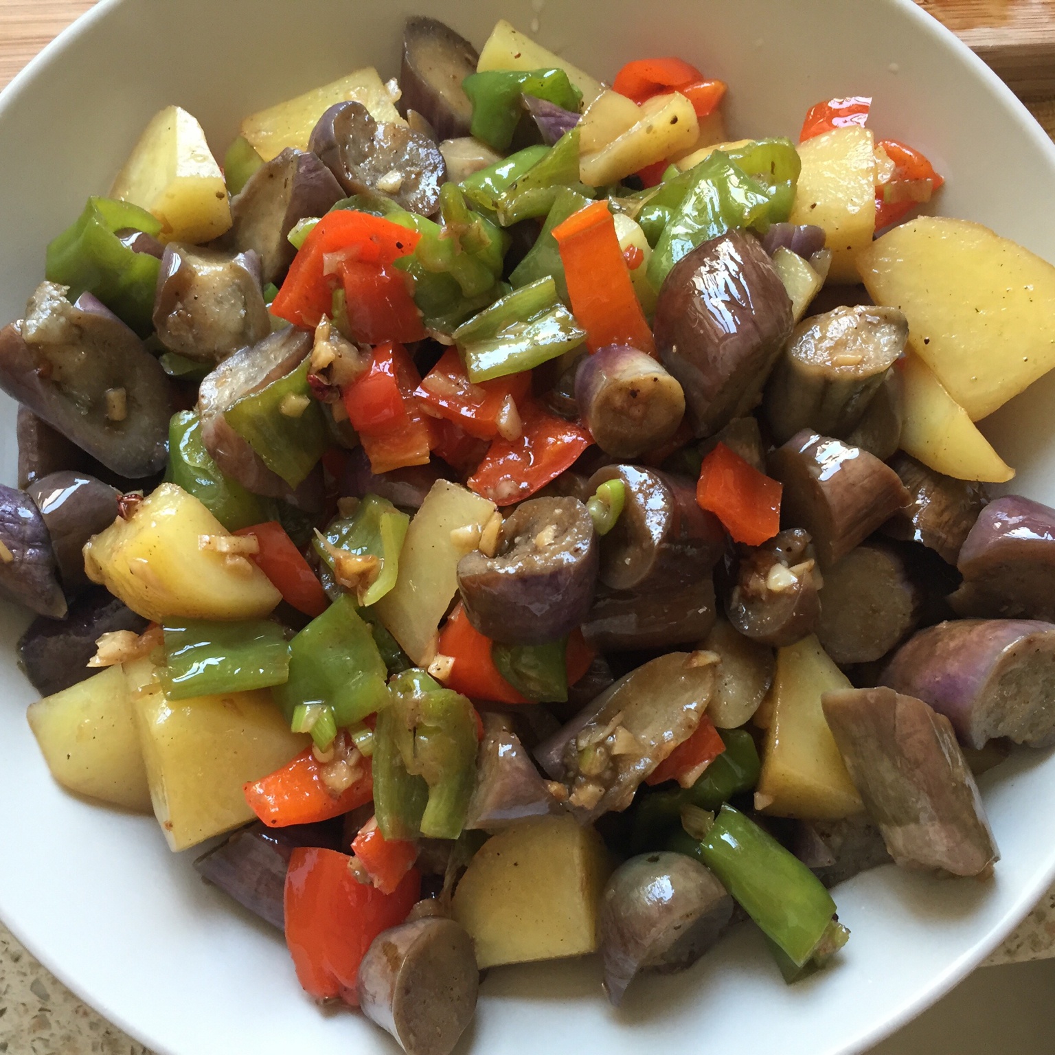用家里冰箱剩的火腿肠,配的彩椒,色香味具佳!!!