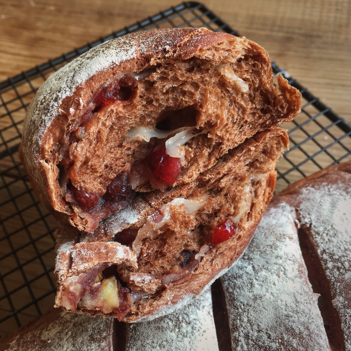 绝不容错过的一款面包,馅料有红豆泥核桃碎蔓越莓和蜜红豆,想着都流口水,可惜晚上烤的要忍过夜才能吃,真心折磨人啊!早上再回...