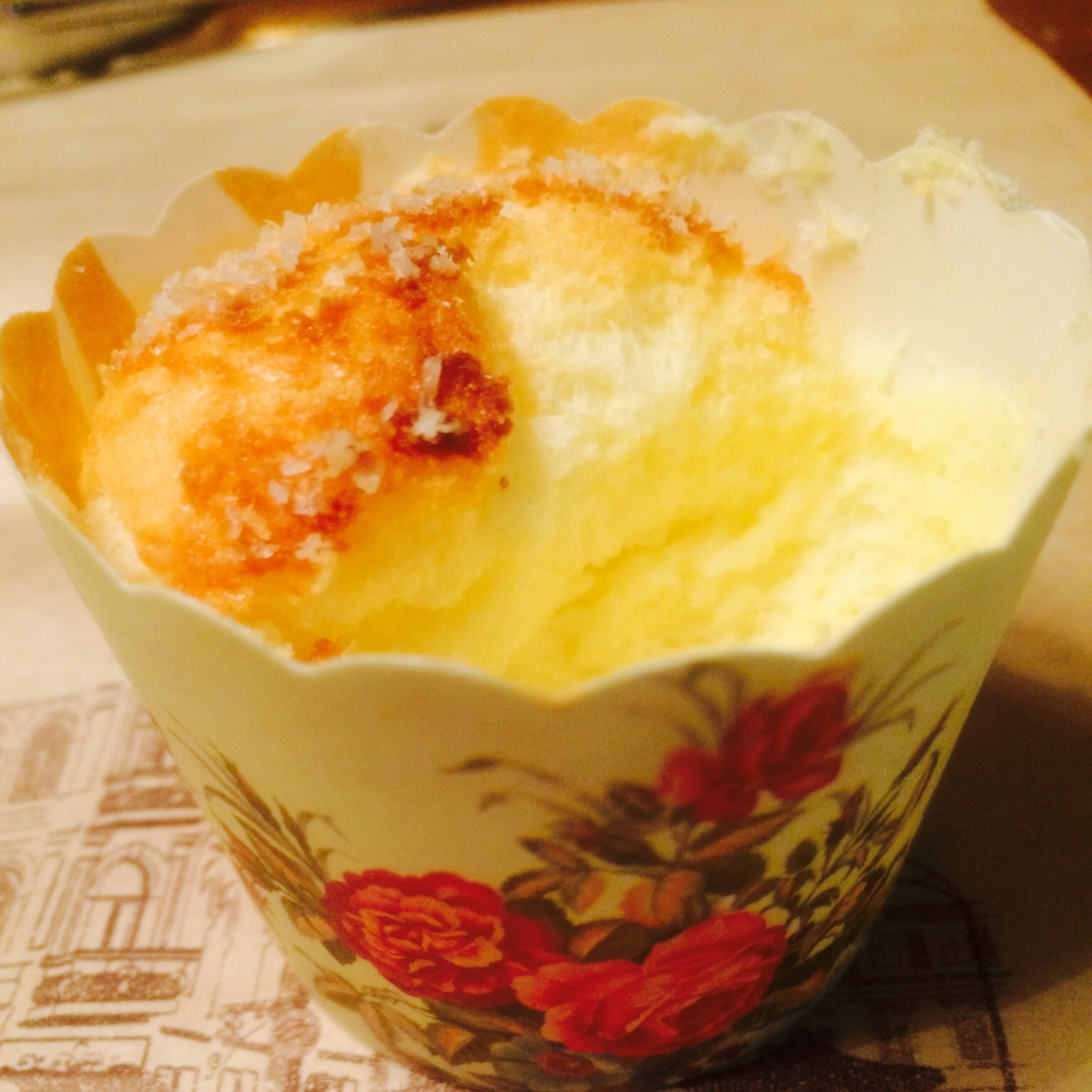 减了糖,用的糖粉。烤盘不深,所以没有长得很高。但是好吃啊!而且很简单。烤20分钟左右就可以盖锡纸了,不然上色太深啦 #早...