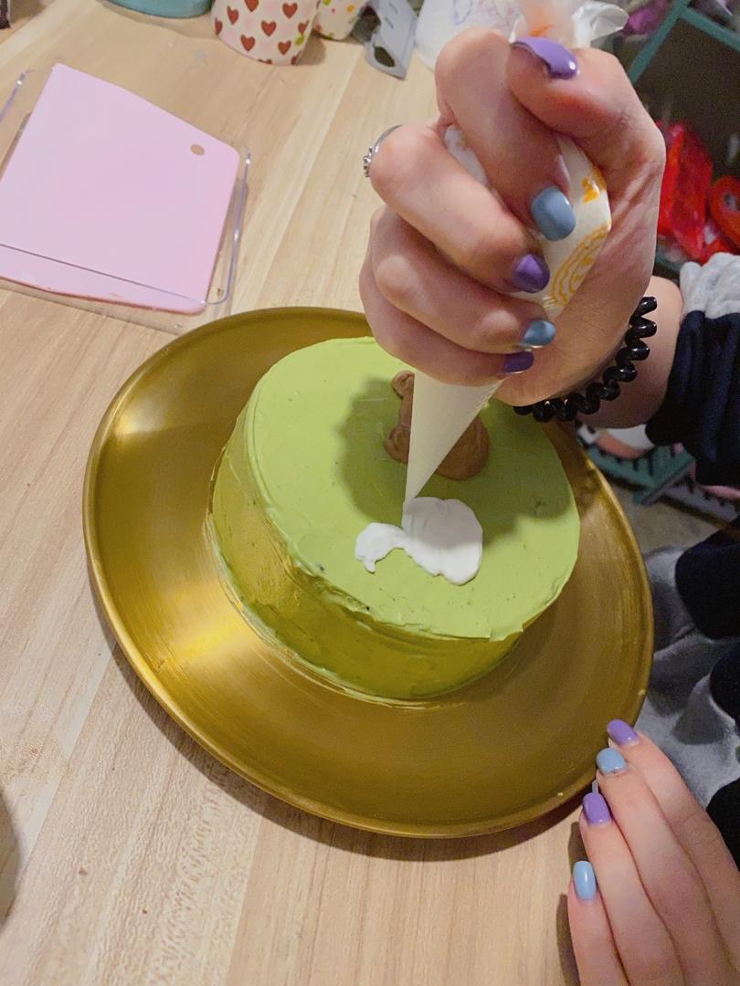 昨晚做了这个舍不得切的蛋糕~却在我去洗刀的时候,女儿毫不留情地啃了一口🤪🤪🤪🤪🤪不过现在还没舍得舍小兔子和小熊🙃