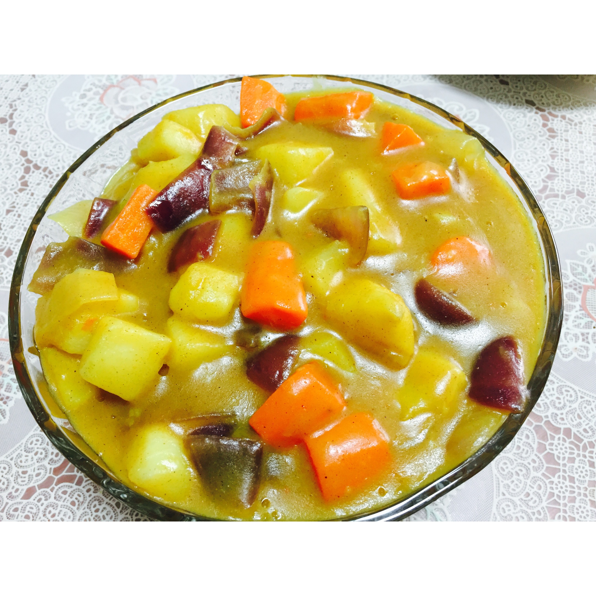 已经做过两次咖喱土豆这道菜了,毫不谦虚的说,第一次就已经颇受好评啦!色香味具佳,真是厨房界的一朵鲜花耶