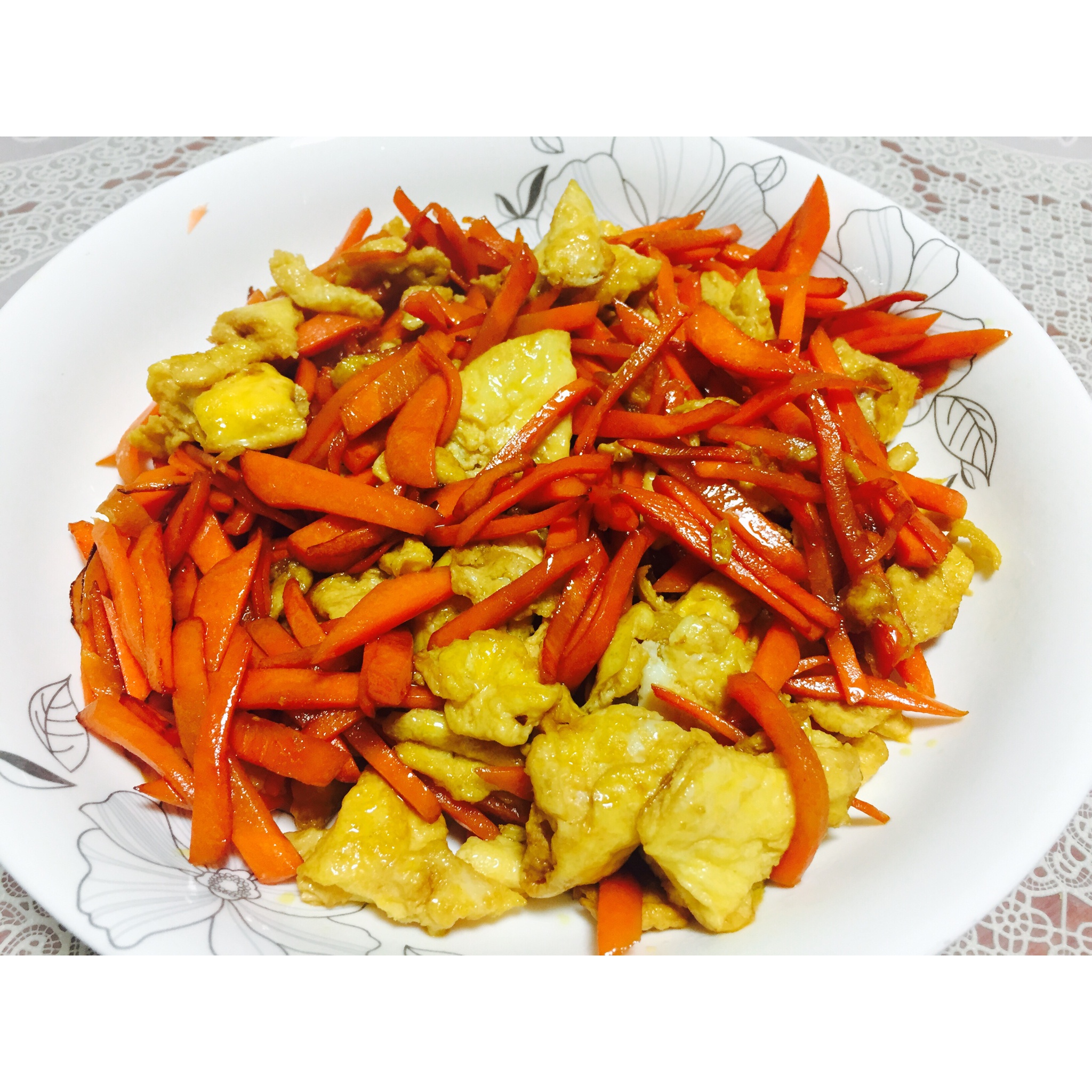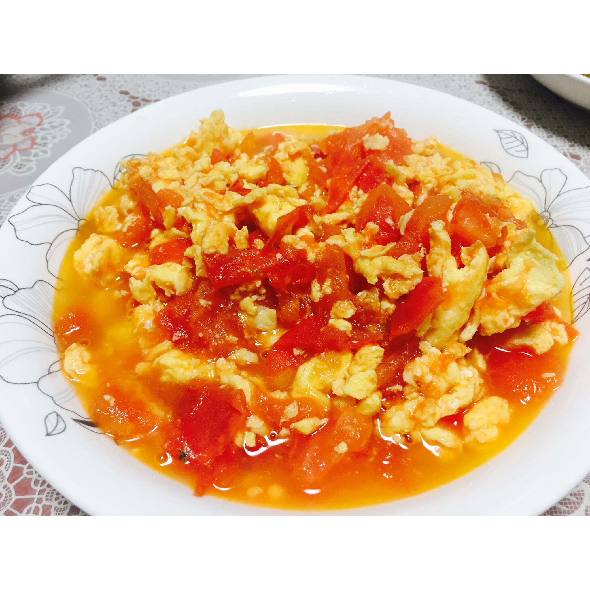 我不喜欢一块一块的鸡蛋,所以鸡蛋下锅就会用筷子打散,只放一点点糖和盐就很美味了!老公连汤儿都喝了! #晚餐•2015年1...