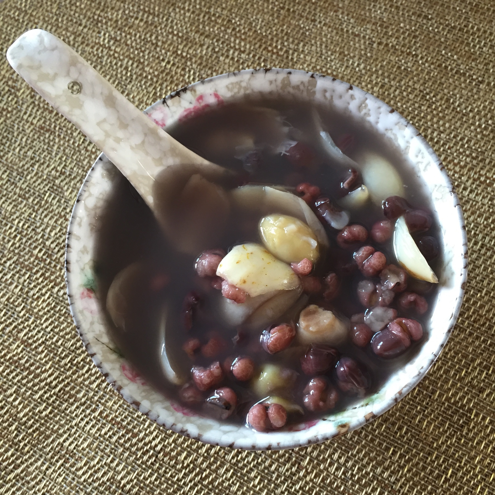 红豆薏仁百合白果汤~暖暖的^_^(白果是小区里白果树上采摘的,可以说是野生绿色食品吗 (^O^) #早餐•2015年10...