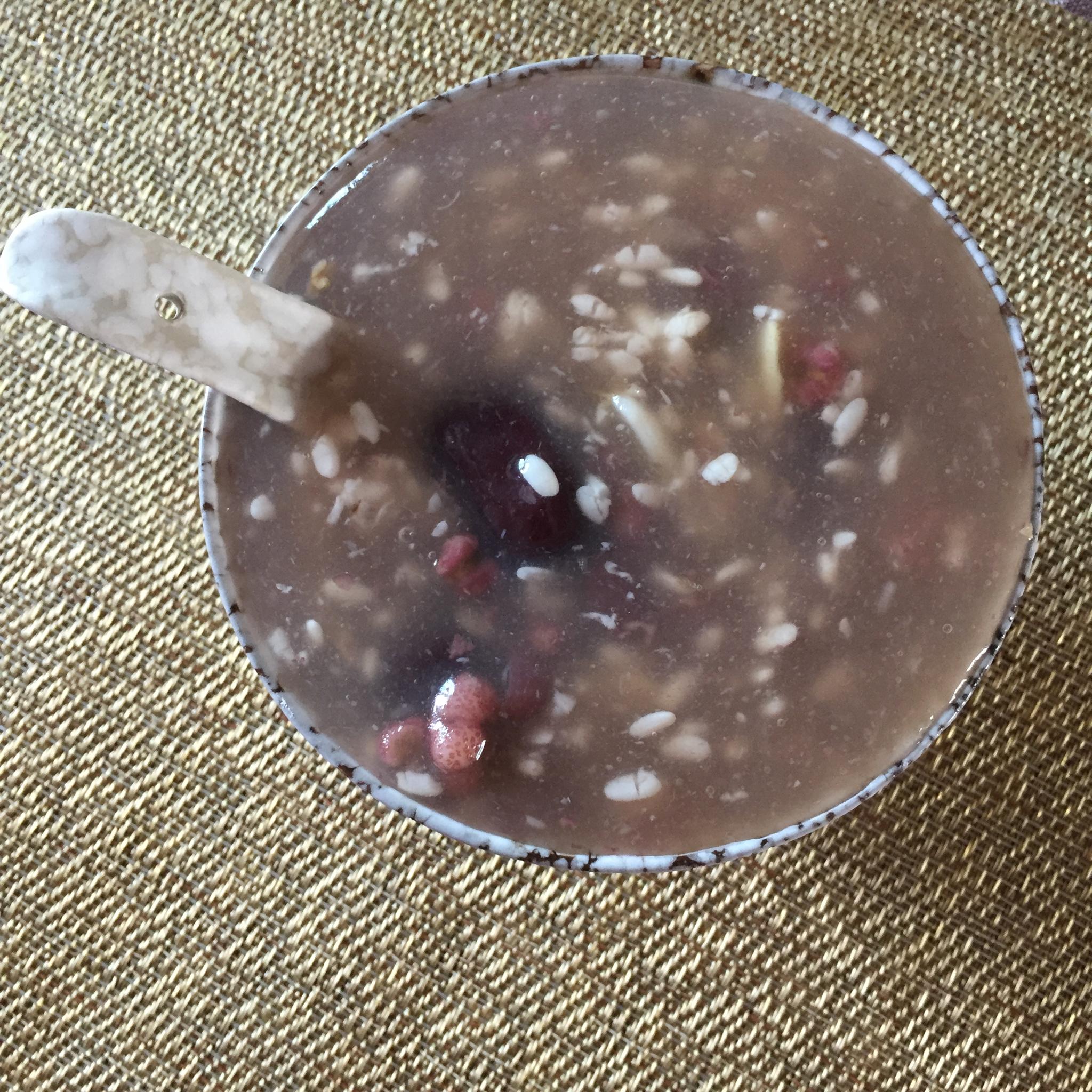 周末快乐:赤豆薏仁白果百合,来两勺酒酿~野生葛根粉冲一碗~初秋暖心暖胃又暖身^_^女生,要对自己好一点、关爱多一些 #早...