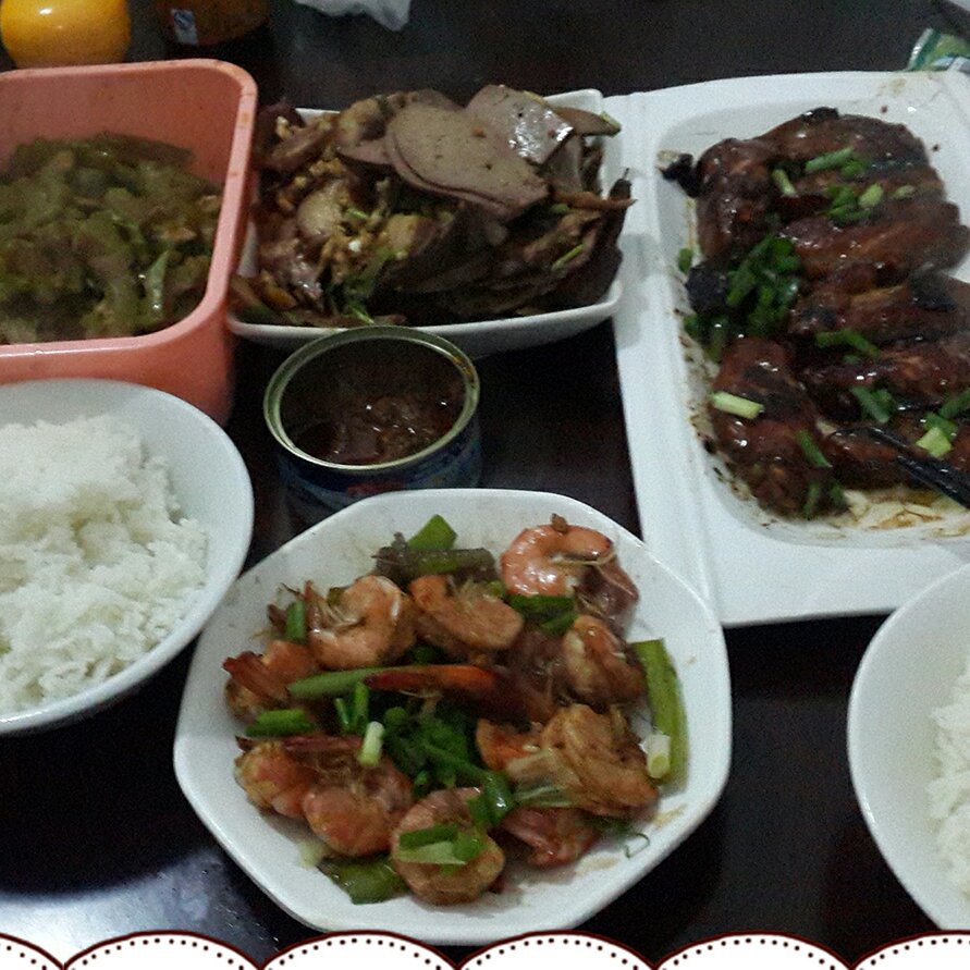 葱炒基围虾~可乐鸡翅~水焯皮皮虾