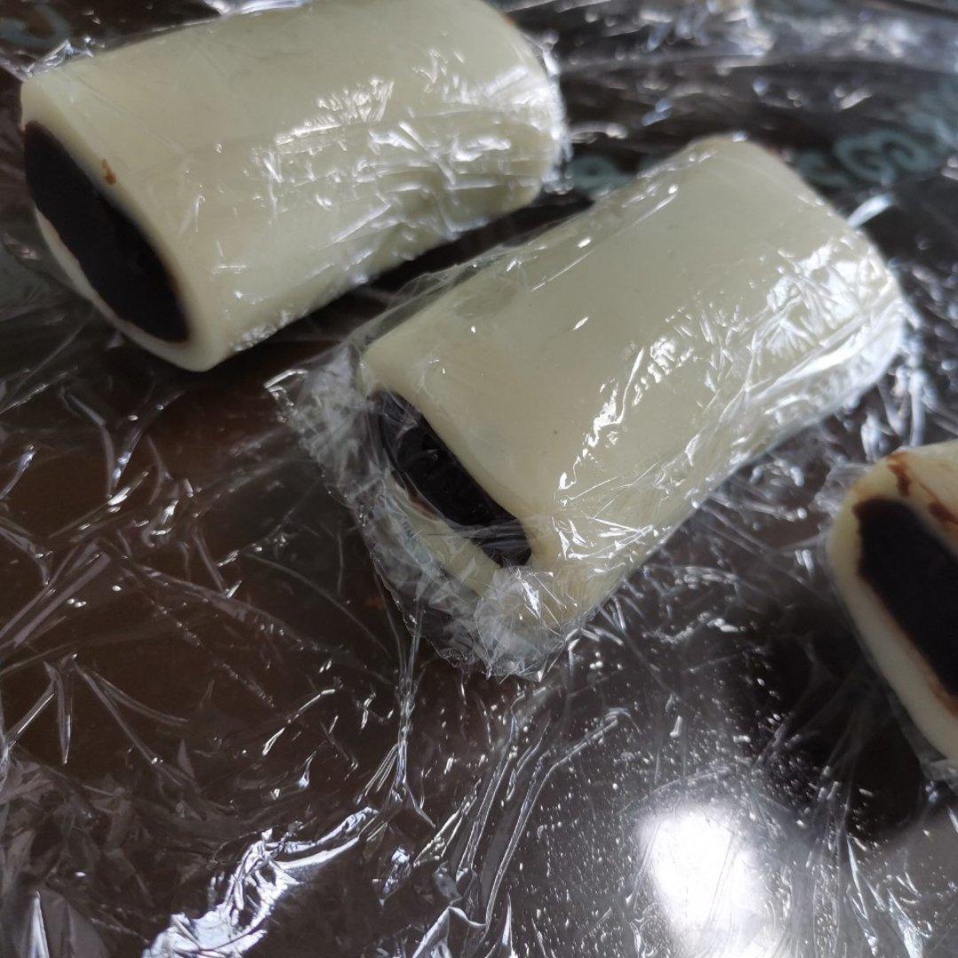又来刷了,加了5克大麦青汁粉,用了200克豆沙,狠狠的裹!青条糕,哈哈!做了七根。