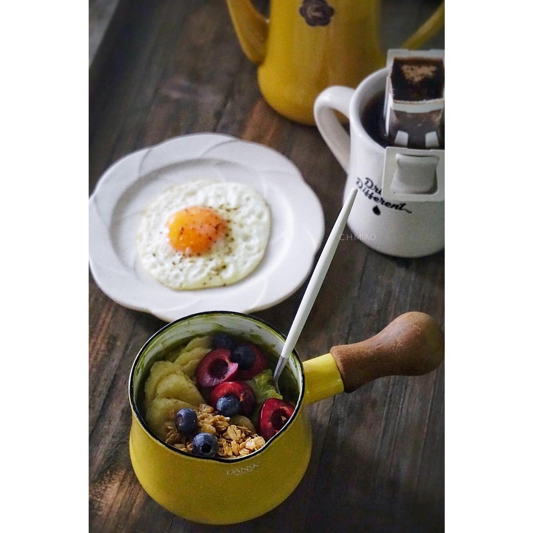 今日早餐:抹茶燕麦粥+🍳