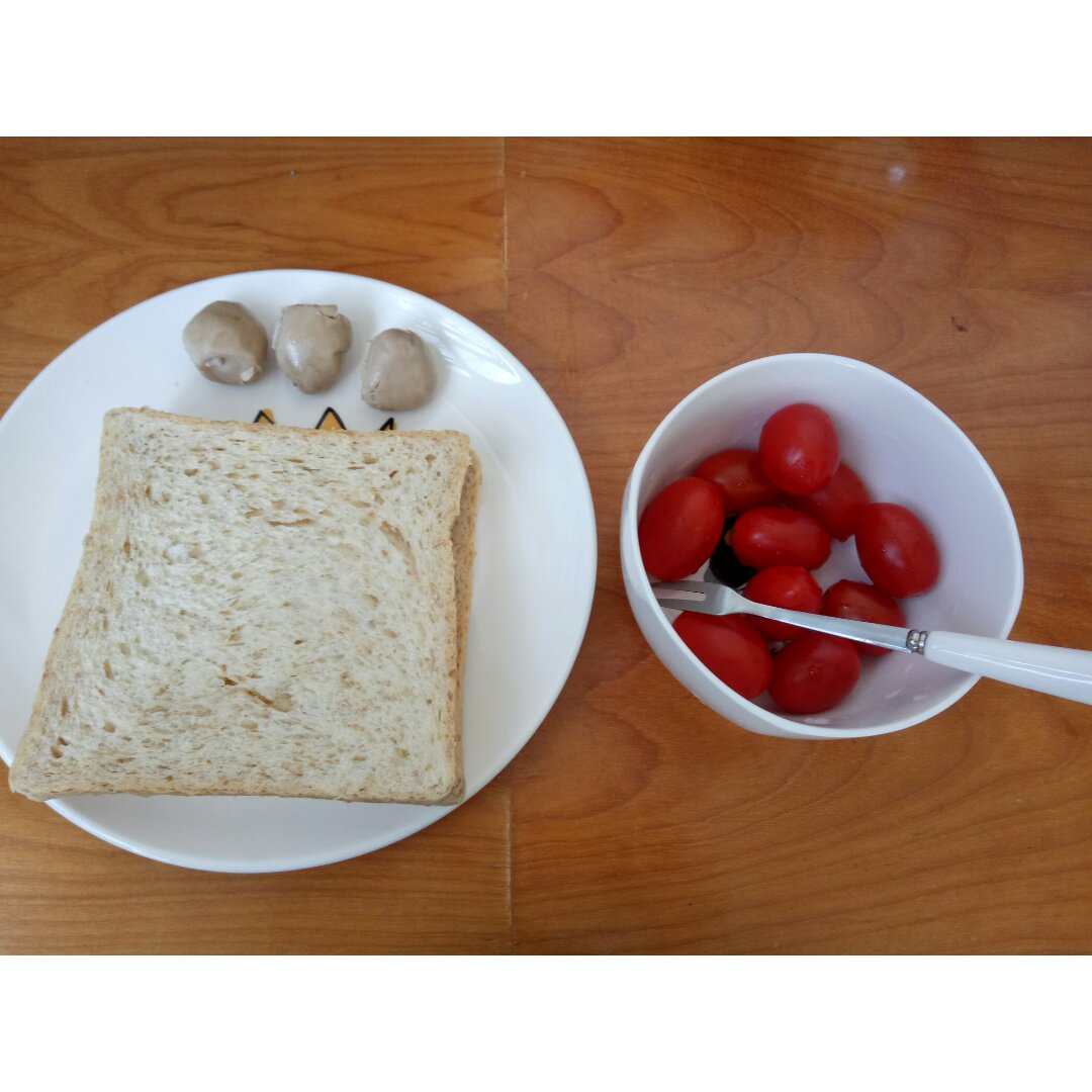 两片全麦+3个鹌鹑蛋+10个圣女果……应该...
