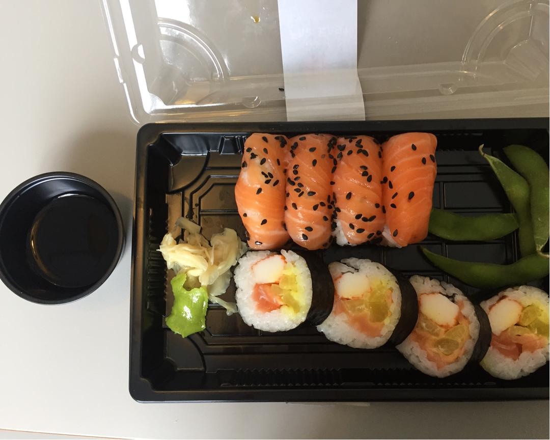 开心,附近超市有卖寿司的了~