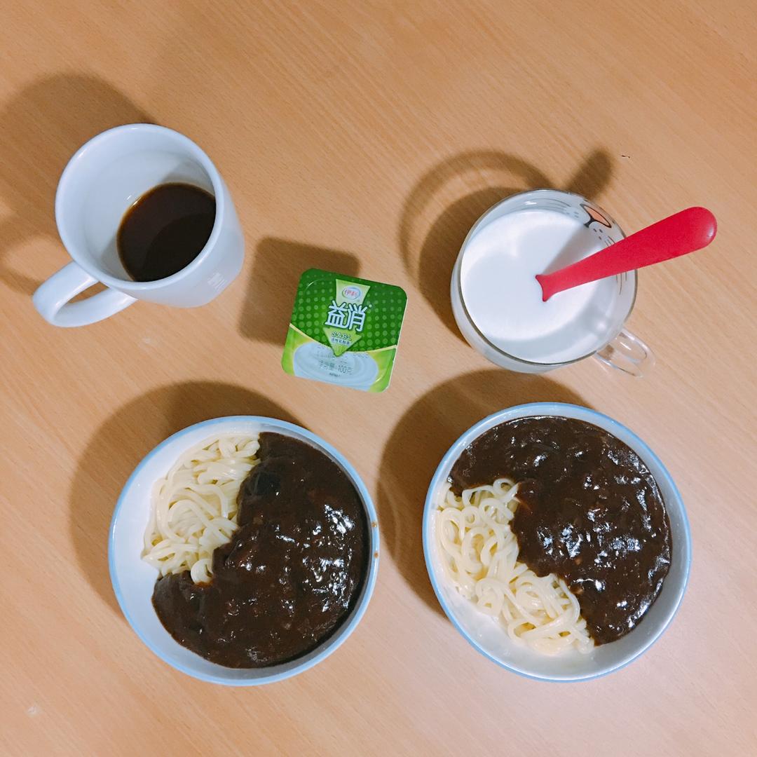 韩式炸酱面有点甜,酱不咸,不刺激。很棒的早餐!