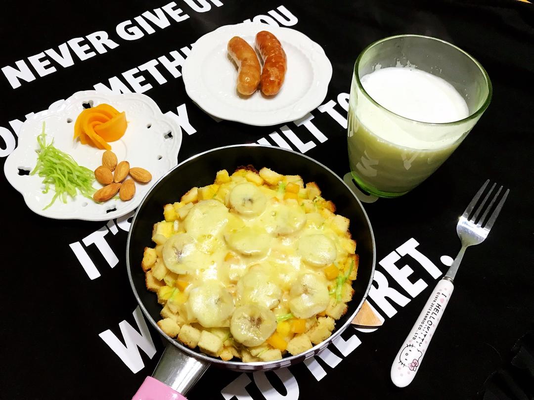 这个世界,既有美妙的旋律,又有美味的食物,都不可辜负,敞开怀抱吧[呲牙]今日早餐:香蕉巧克力蛋奶吐司,橘子