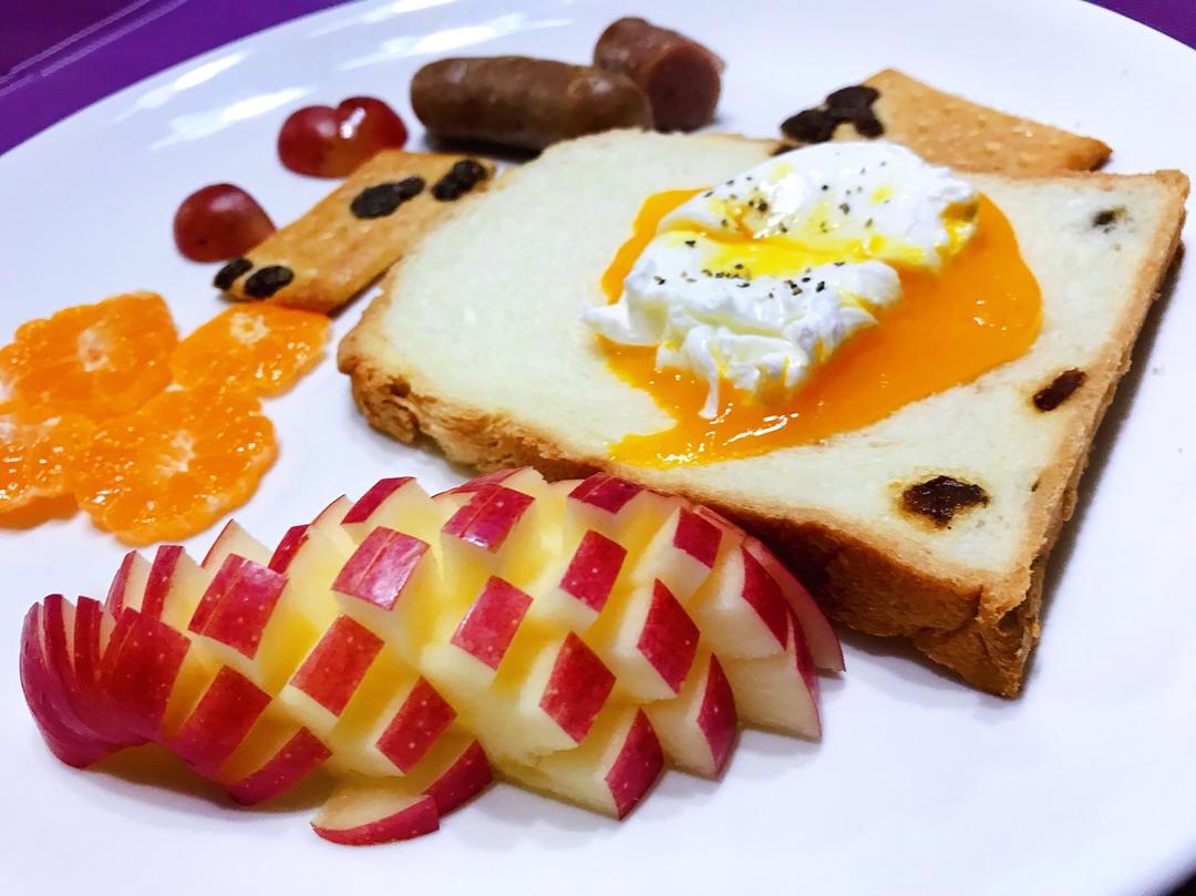 心情颇好地给早餐摆了个盘