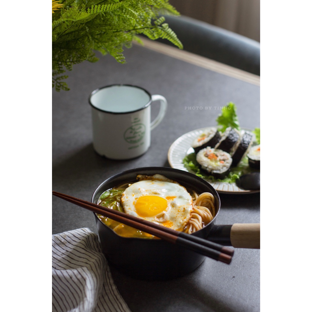 超市买的拉面搭配了牛肉汤料包,味道不错,加了生菜,完全看不出来了…紫菜包饭是...