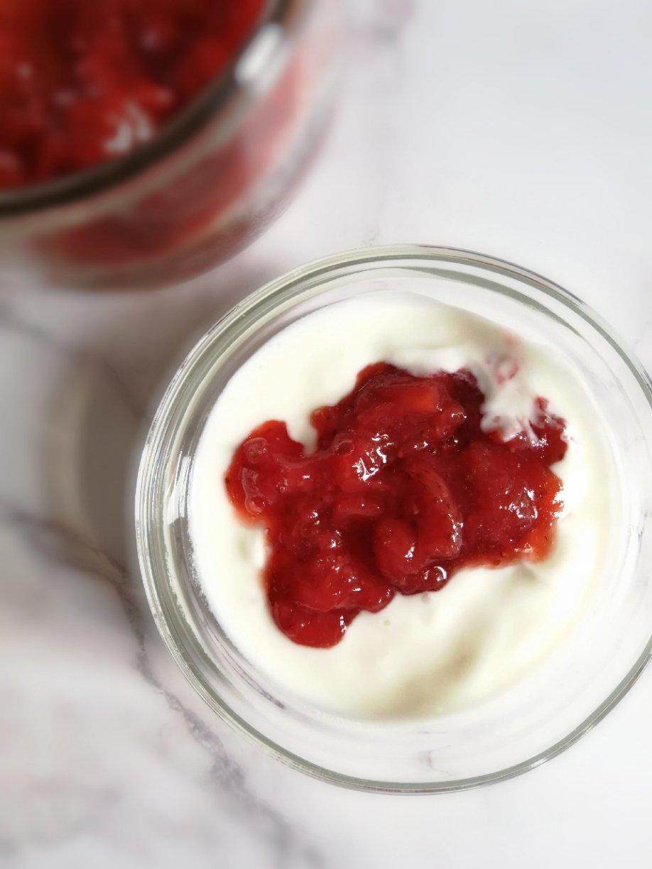春天来了~自制酸奶加上大颗粒草莓酱🍓,冰冰凉凉酸酸甜甜哈哈哈……