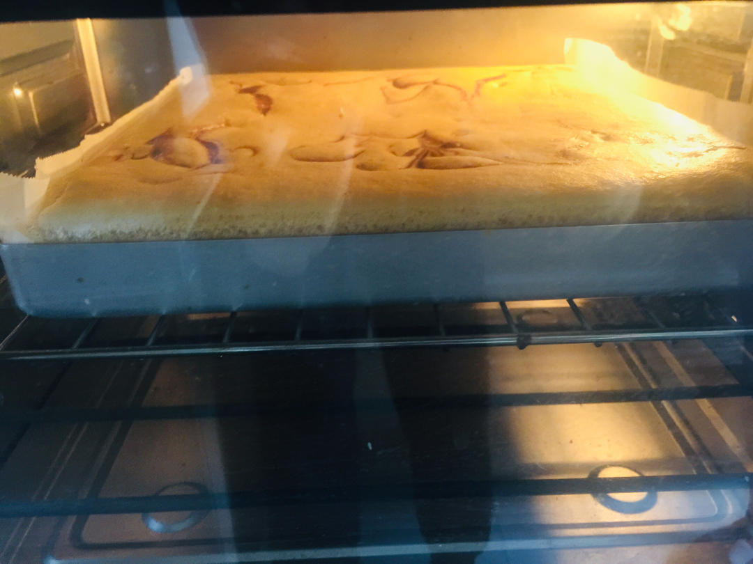 没有低粉了,用高粉和玉米面混合。加了巧克力和草莓果酱,但是沉到面糊里面了。120g玉米面,50g高粉,8个蛋(挑蛋筋、加...
