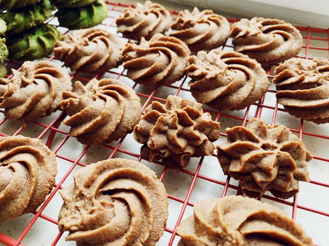 很好吃!做了四份,原味,芝麻,抹茶和可可,芝麻味的超香~抹茶和可可的要多加点糖,不然不甜。冬天黄油只要软化到位还是很好挤...