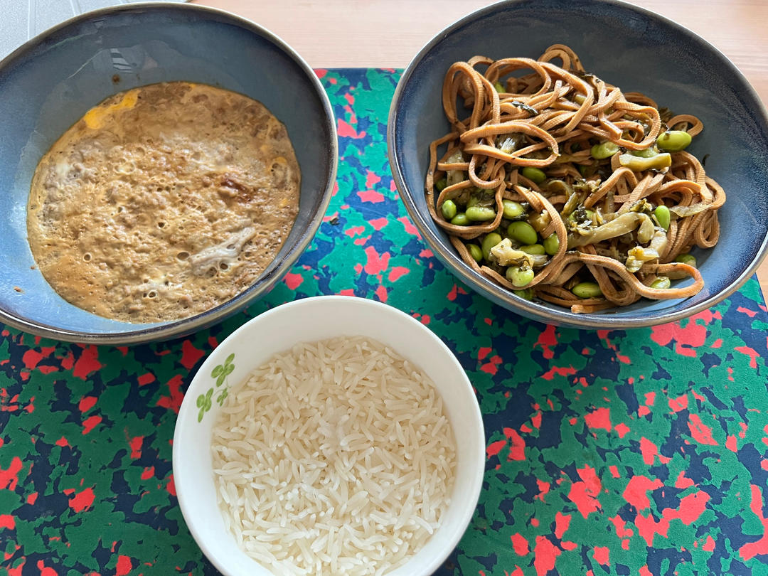 雪菜笋干毛豆+莲子绿豆粥。