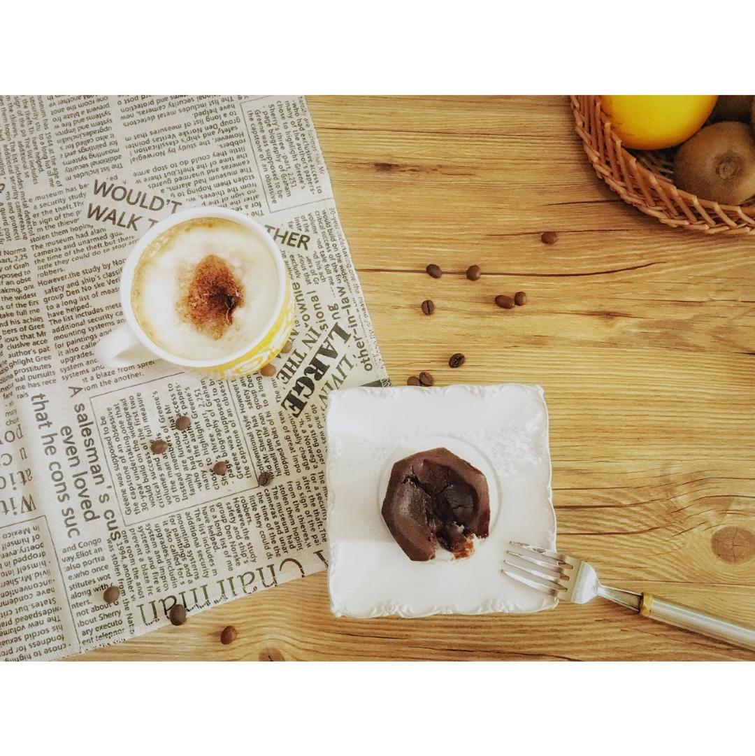 卡布奇诺和熔岩巧克力蛋糕。流心淌出的瞬间,早晨都亮了。