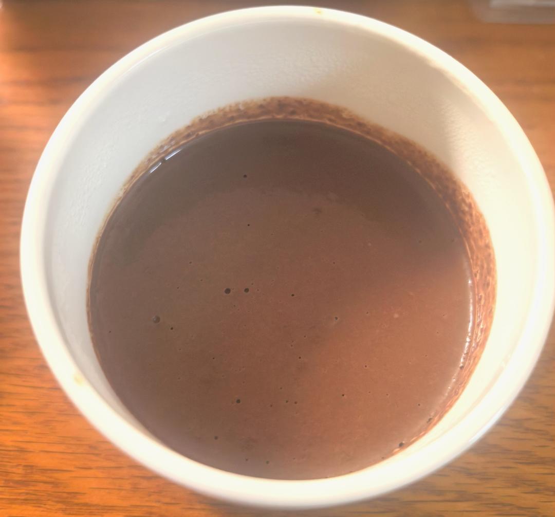 方子材料简单,值得一试。我加了90%的巧克力和含糖的巧克力各一半,搅拌匀后微苦,加了一小勺糖。牛奶减到125度,凝固程度...