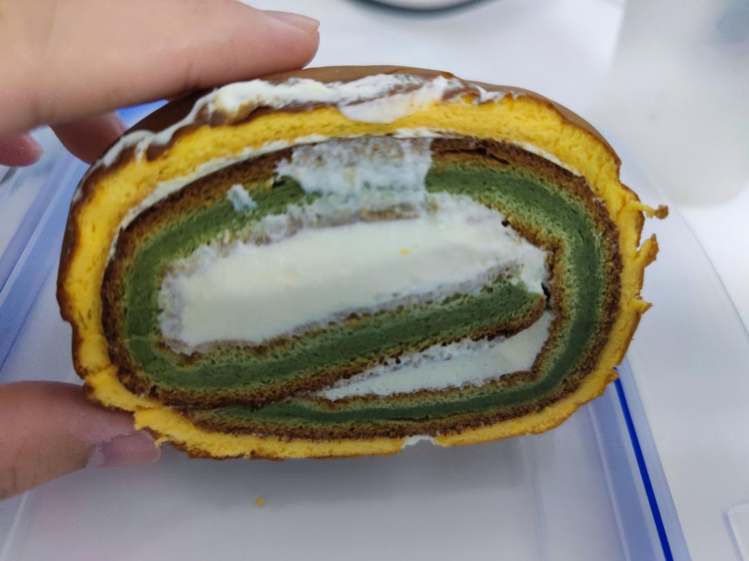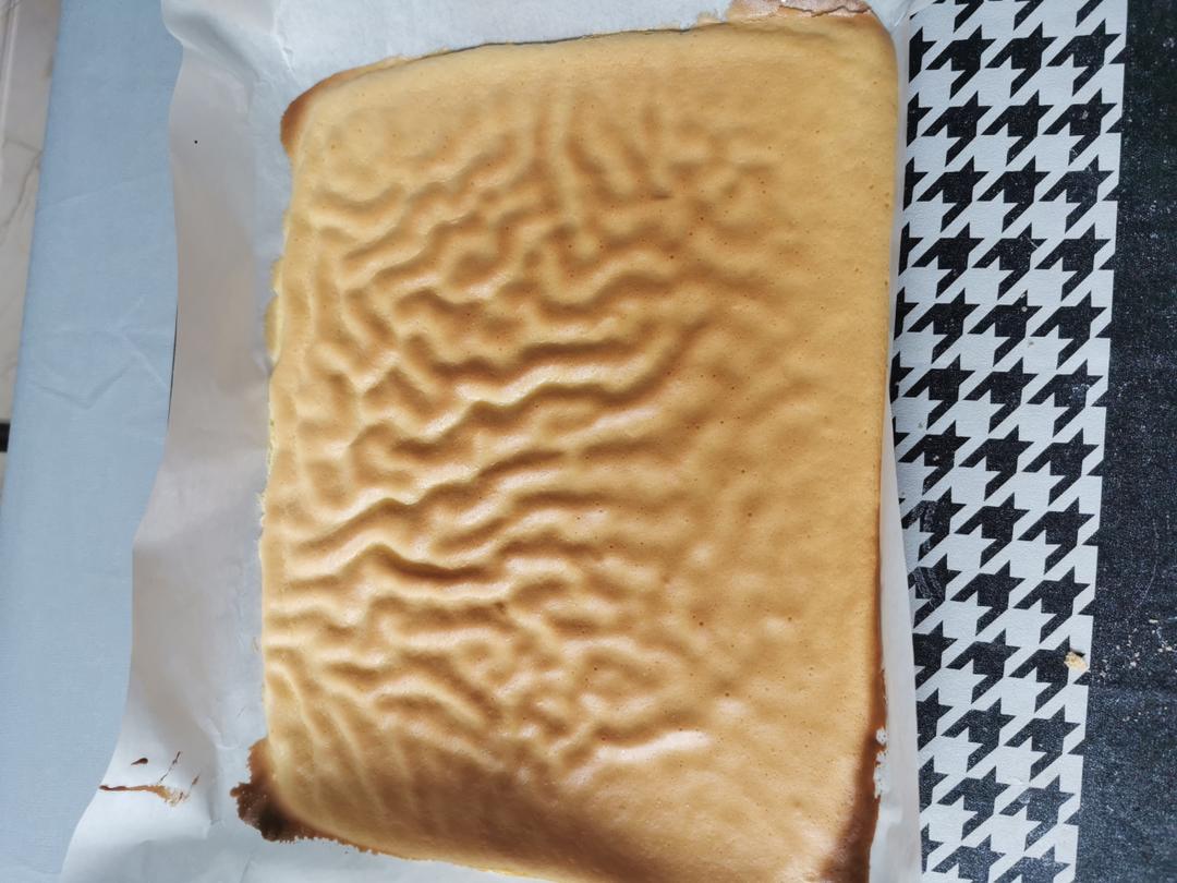 第二次做虎皮卷,用的是这个配方,淡奶油我减量了,烤出来非常好,就是不小心用错了粘皮导致内圈没了小半圈,但总体很满意!#虎...