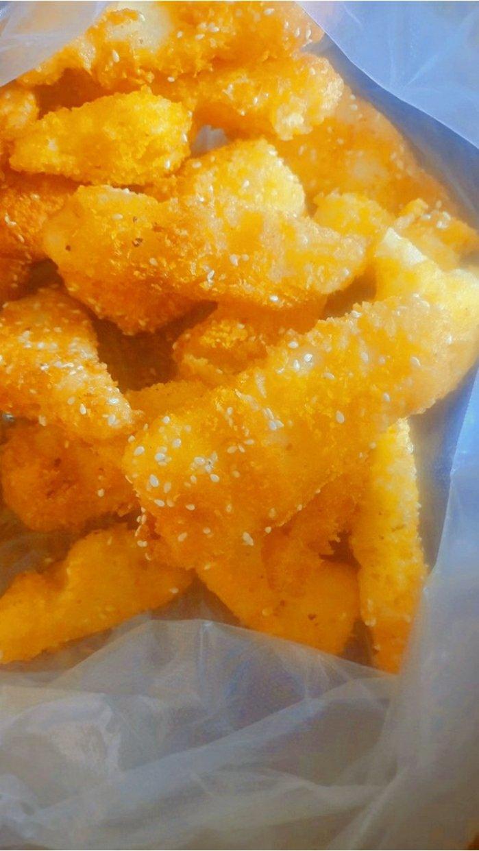 卖相好差!这就是着急还没等冻结实就下锅炸的下场! 味道还行 就是腻 吃两个最多
