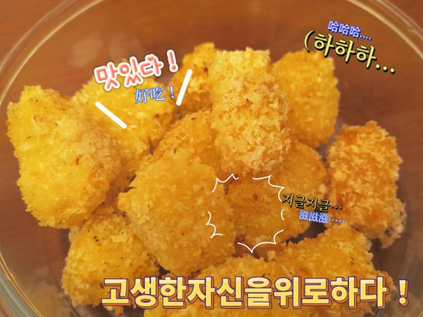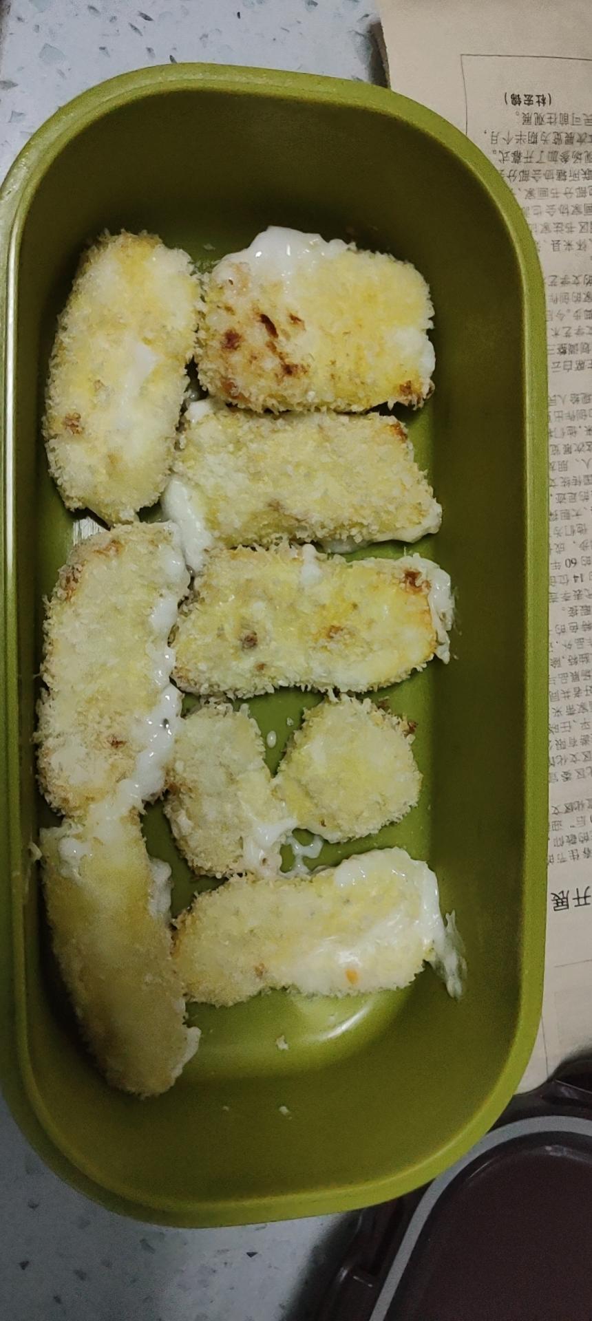 ✔️成功!油炸过程好神奇。裹了面粉、蛋液、面包糠,曾经尝试舍去蛋液,但有些东西就是分不开的。