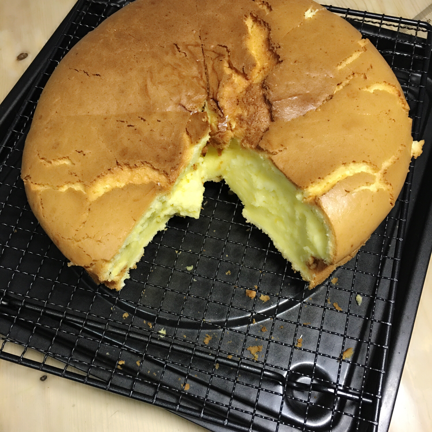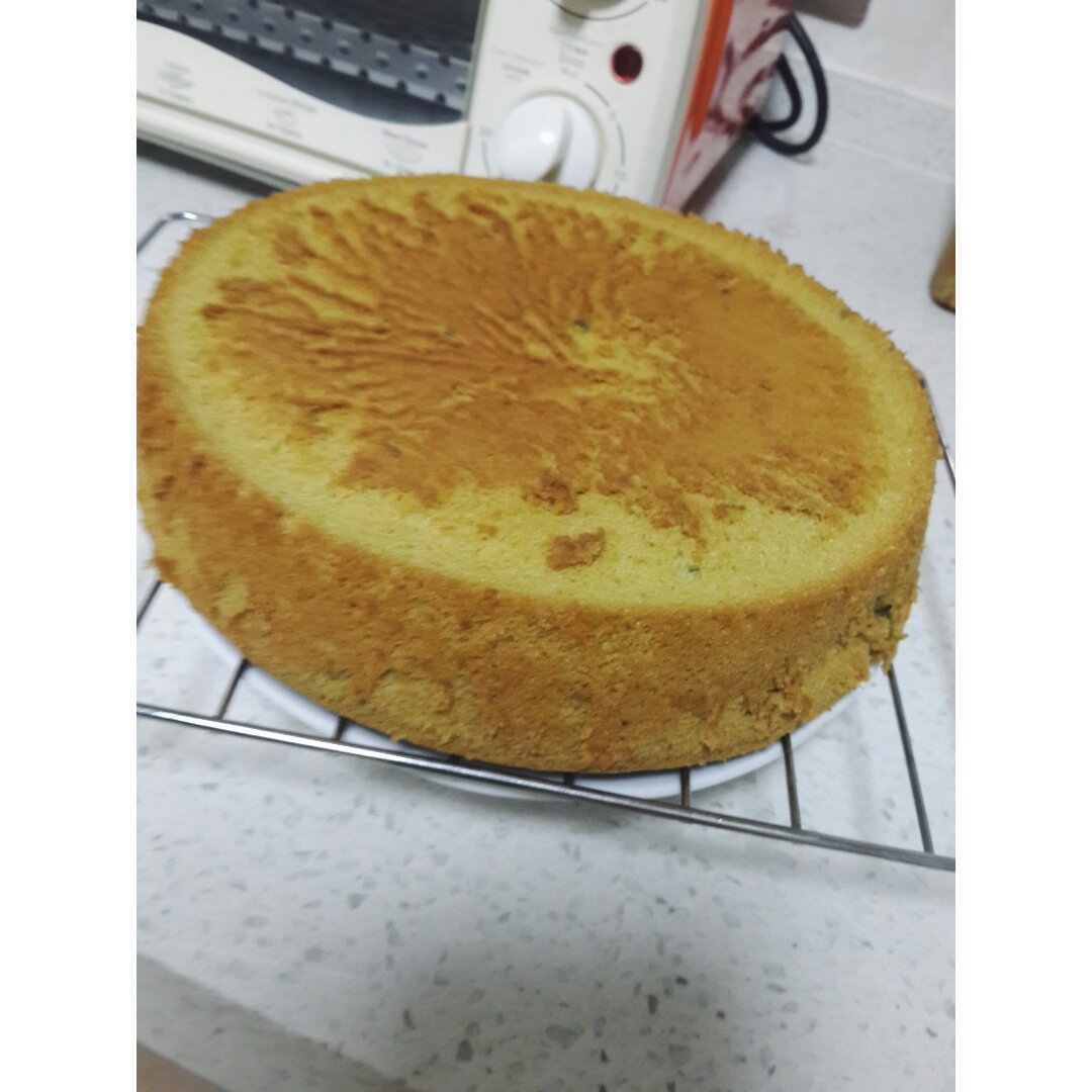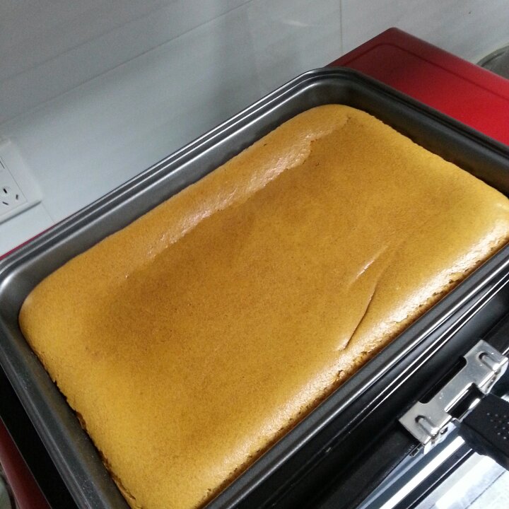 昨天做的6吋圆模,太好吃了,三个人不够分,今天借了单位同事的10吋方形蛋糕模,原料加倍做...