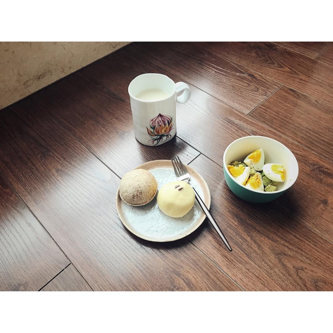 冷字跃上心头,早起热杯牛奶,吃个快手小憨包瞬间暖和,实在不少。仨口味的,儿子的番茄,我的沙拉,他爸的甜面酱。😁 #早餐•...