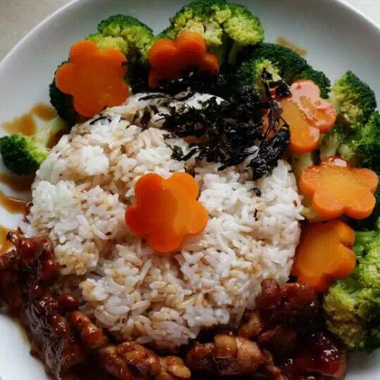 妹妹做的鸡腿照烧饭,色香味具全!