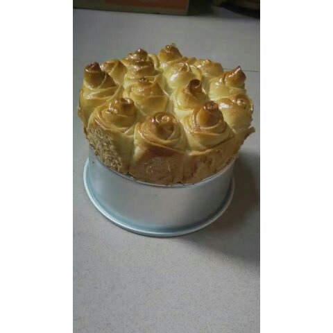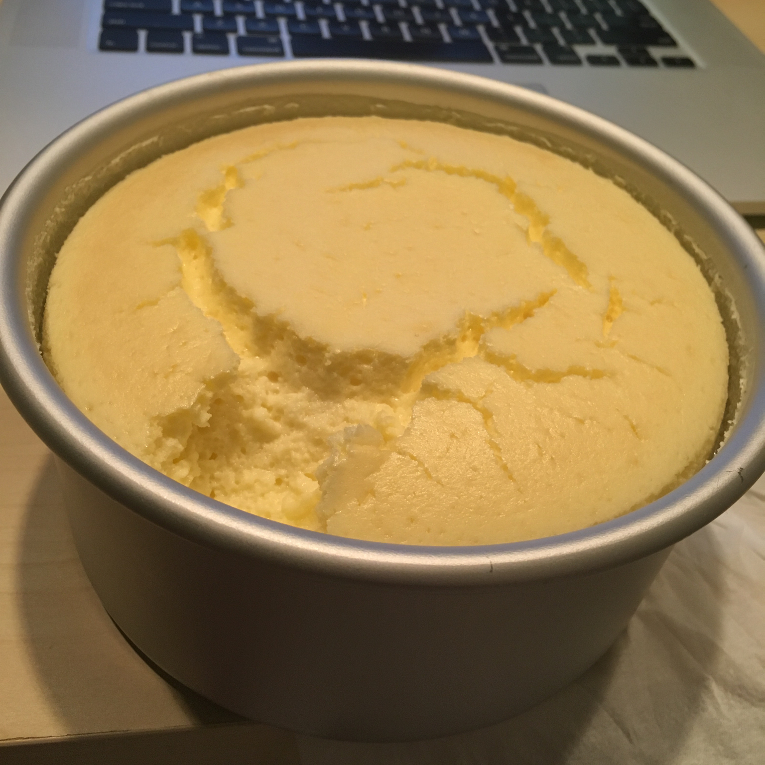 忍不住先吃了一口... 好吃!用的6寸模具... 坐等明早冷却后的蛋糕