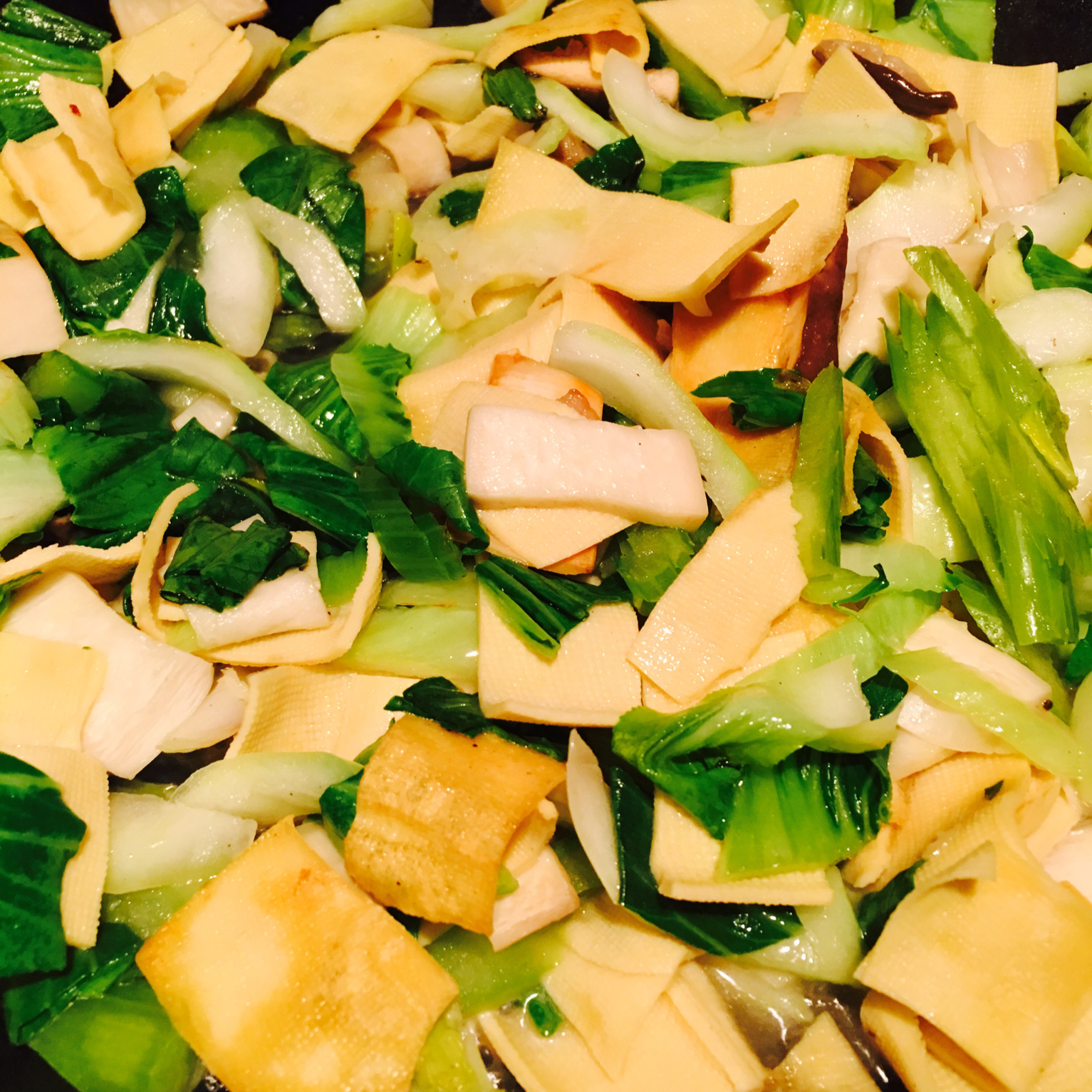 青菜豆皮鸡腿菇,蒜要用大瓣哦