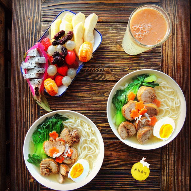日式叉烧鸡肉面,水果,鲜榨柠檬、梨汁!