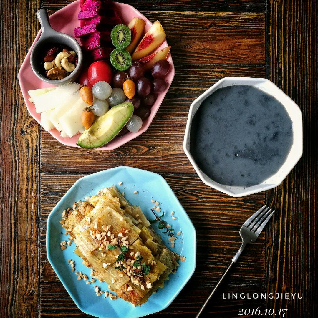 烤冷面,鹰嘴豆黑芝麻糊,水果,每日坚果!
