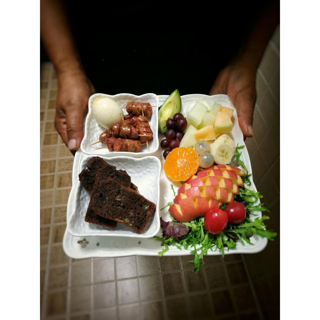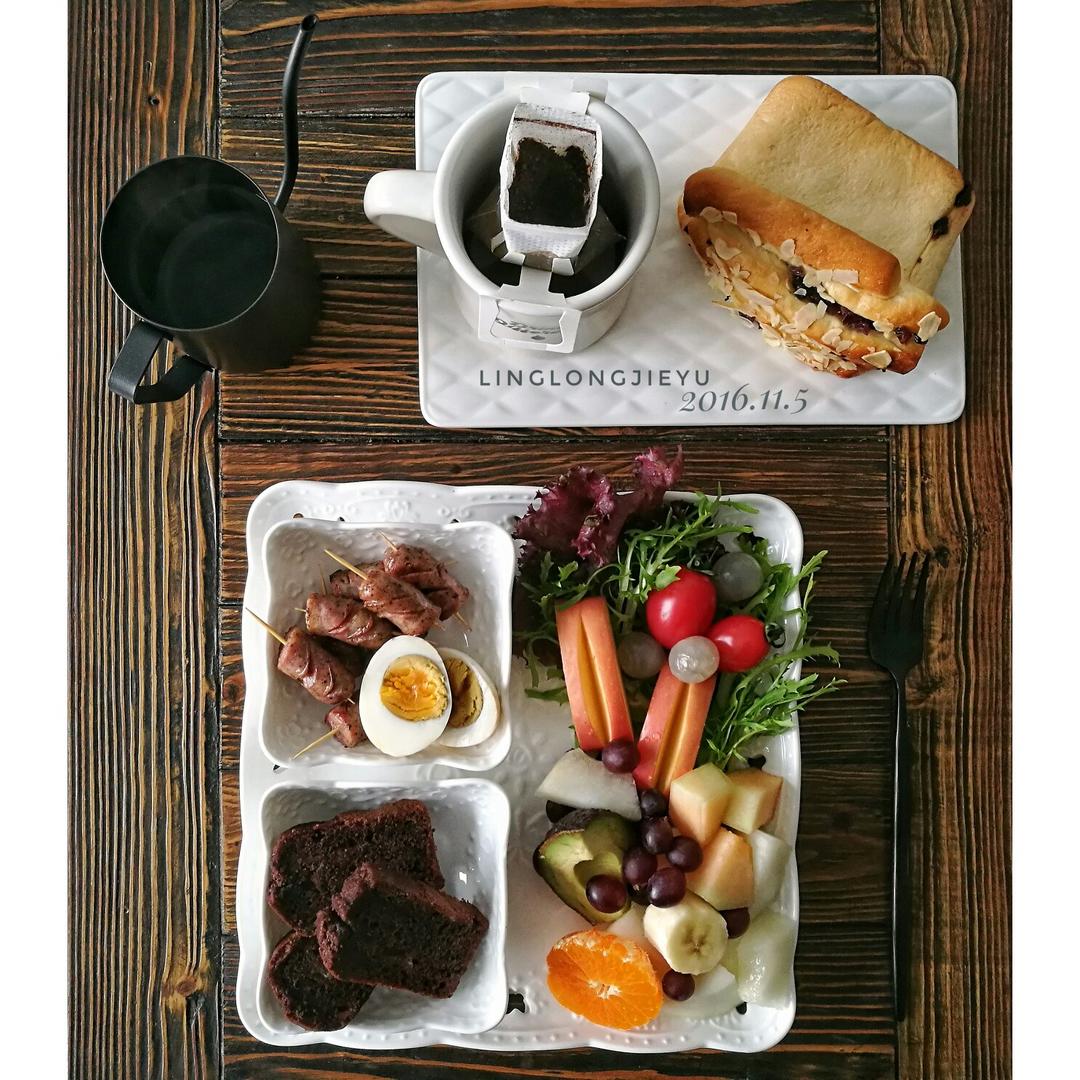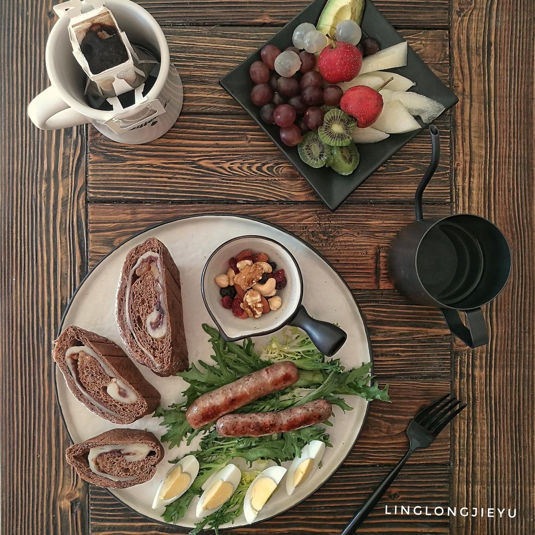 香蕉巧克力蛋糕,双莓手撕包,溏心茶叶蛋,齿物香肠,水果,还有头几天逛何...