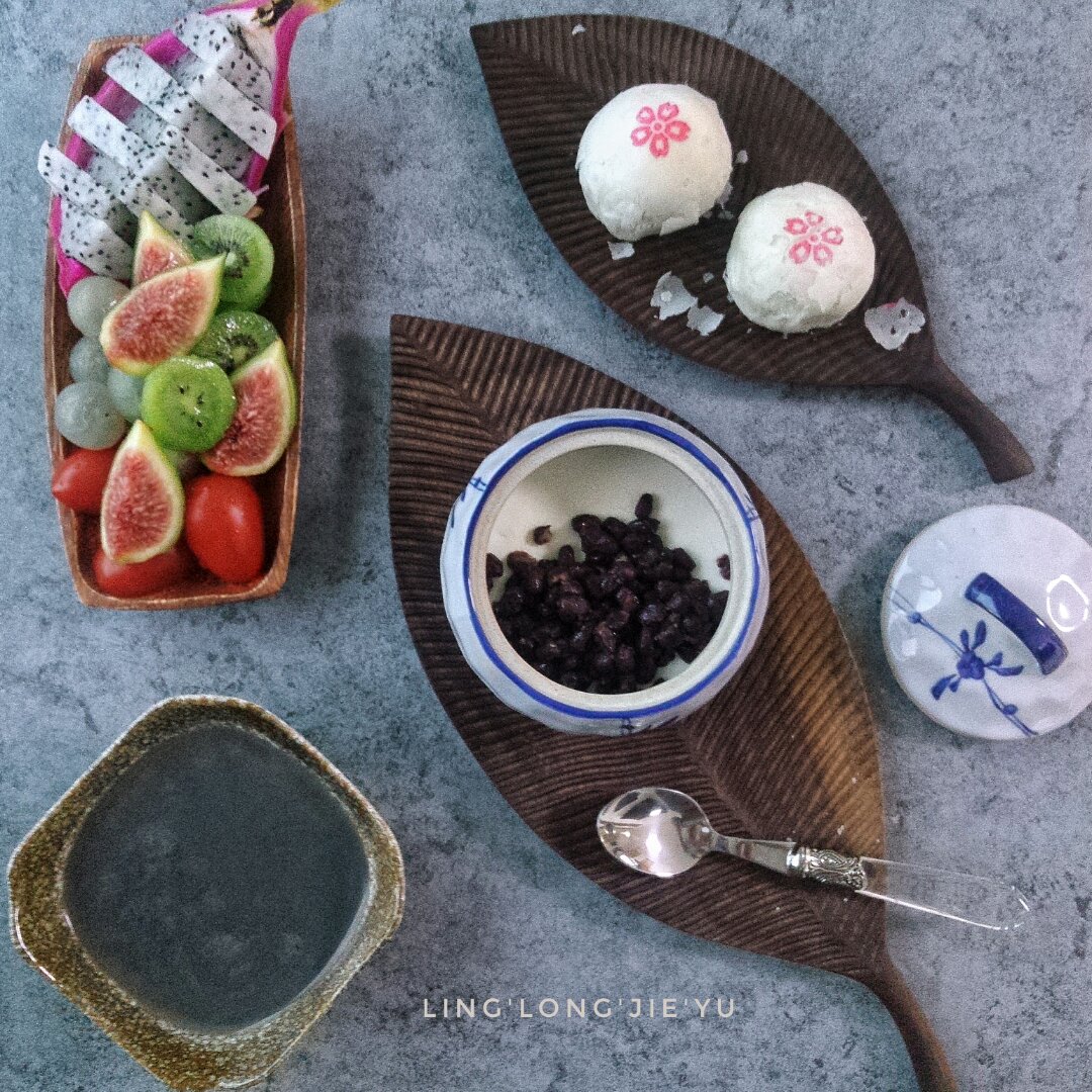 苏式鲜肉月饼,红豆双皮奶,水果,鹰嘴豆黑芝麻糊!