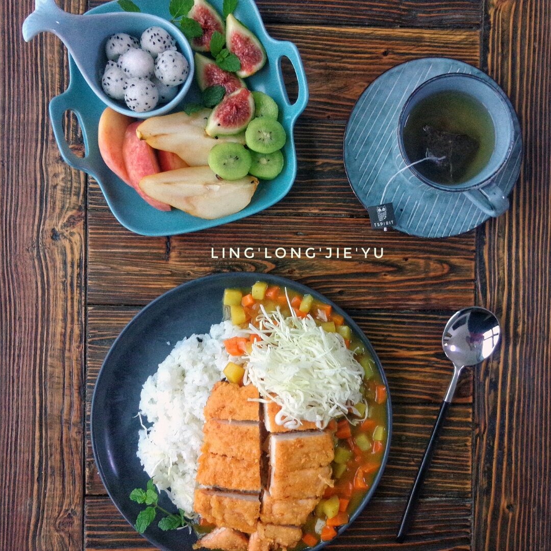 咖喱鸡排饭,水果,斯里兰卡锡兰红茶!每天坐在杨先生对面看他吃早饭也是一种...