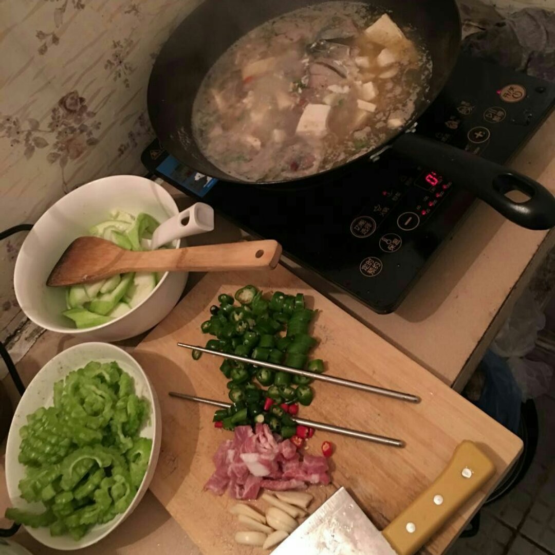 鯽魚豆腐湯&肉炒苦瓜