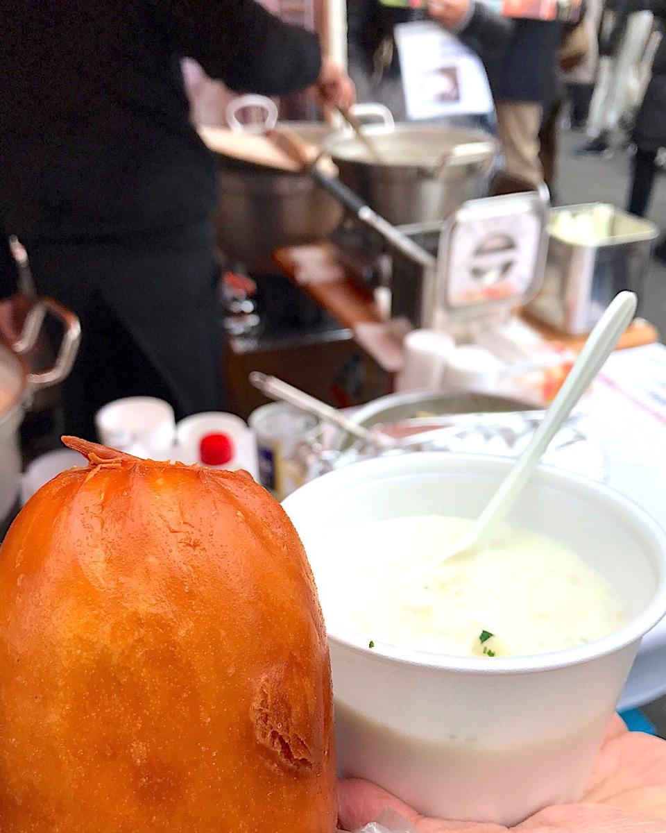 下午吃的中国的炸馒头和蛤蜊浓汤。好吃😋