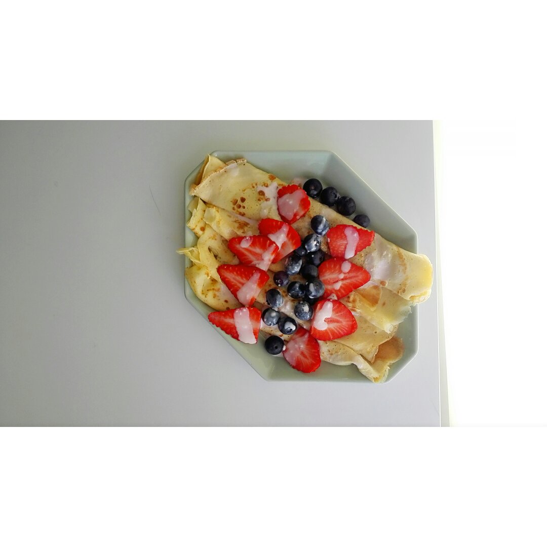 无油无糖全麦可丽饼和很多的水果。更多关于美食和生活欢迎关注微信公众号qiuqiu_food