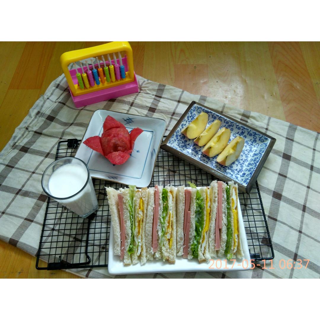 三明治+牛奶+西红柿苹果