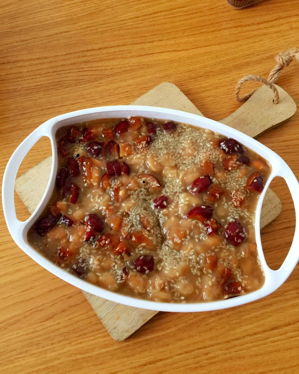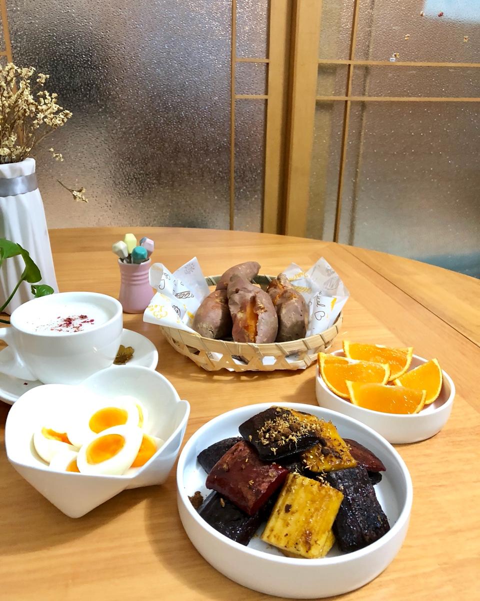 莲子银耳羹,红糖年糕,烤烟薯,鸡蛋,水果!